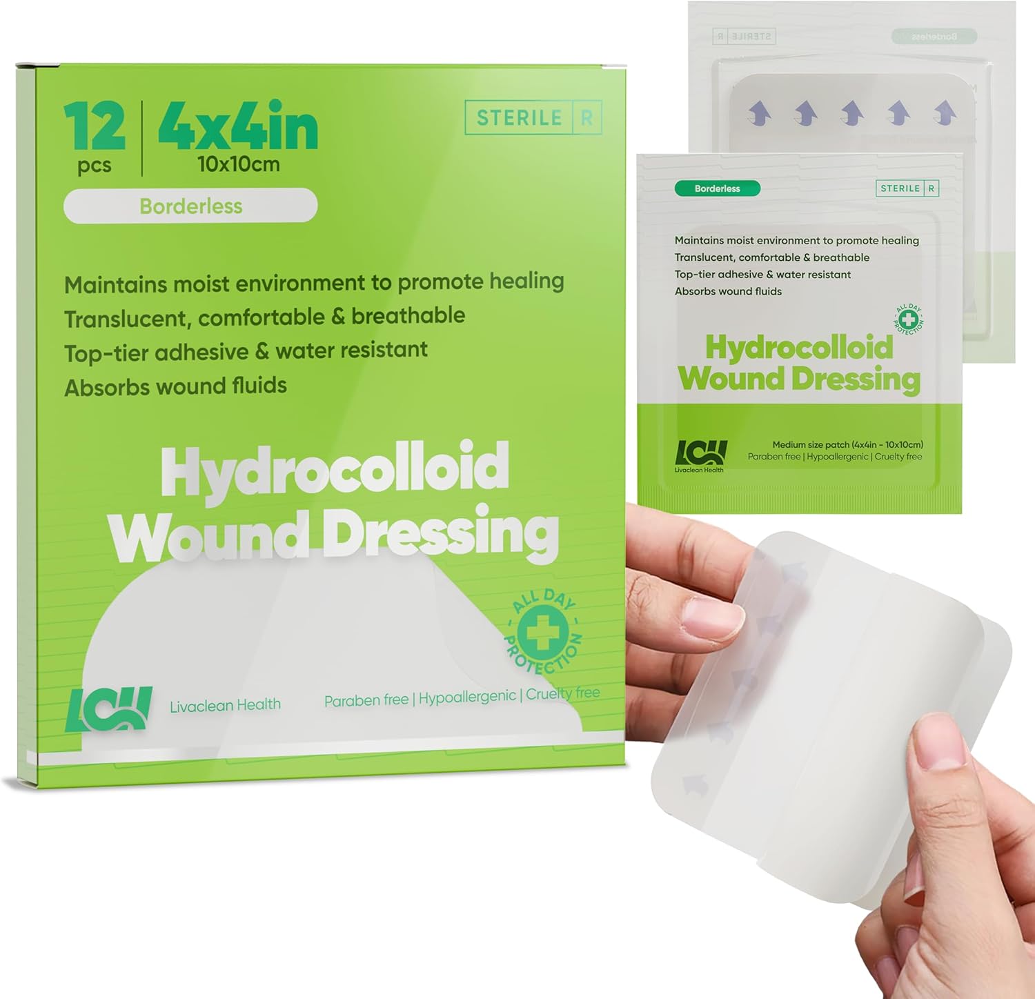 - β MORE BANG, LESS BUCK - We offer 12 count individually packaged large hydrocolloid bandages 4" x 4" (10 x 10cm). Perfect for use on minor burns, minor cuts, scrapes, light-exuding chronic wounds, superficial acute wounds, pressure ulcers, etc.