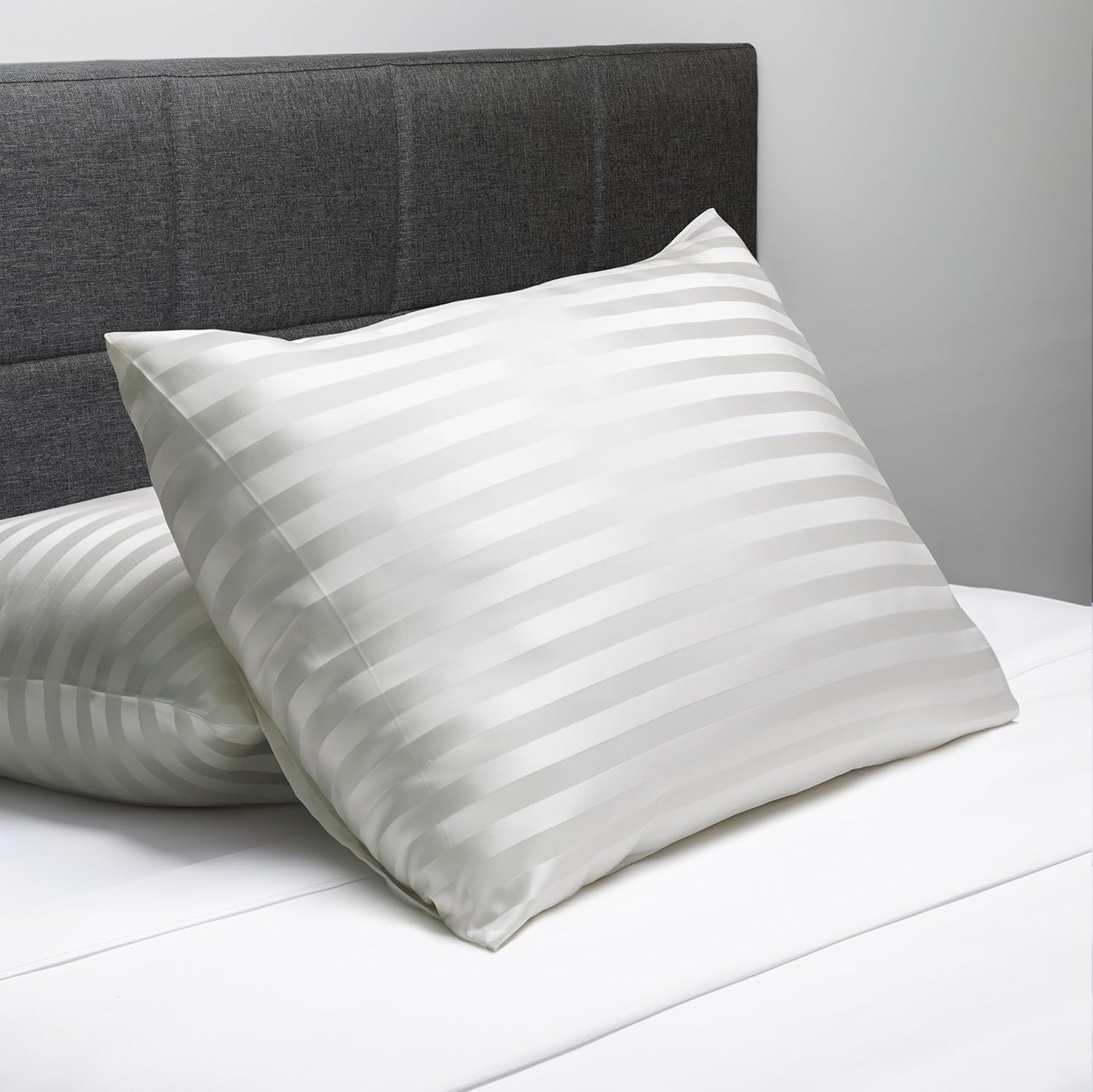 Fishers Finery 30mm 100% Pure Mulberry Silk Pillowcase, Quality Tested (White Stripe, King)