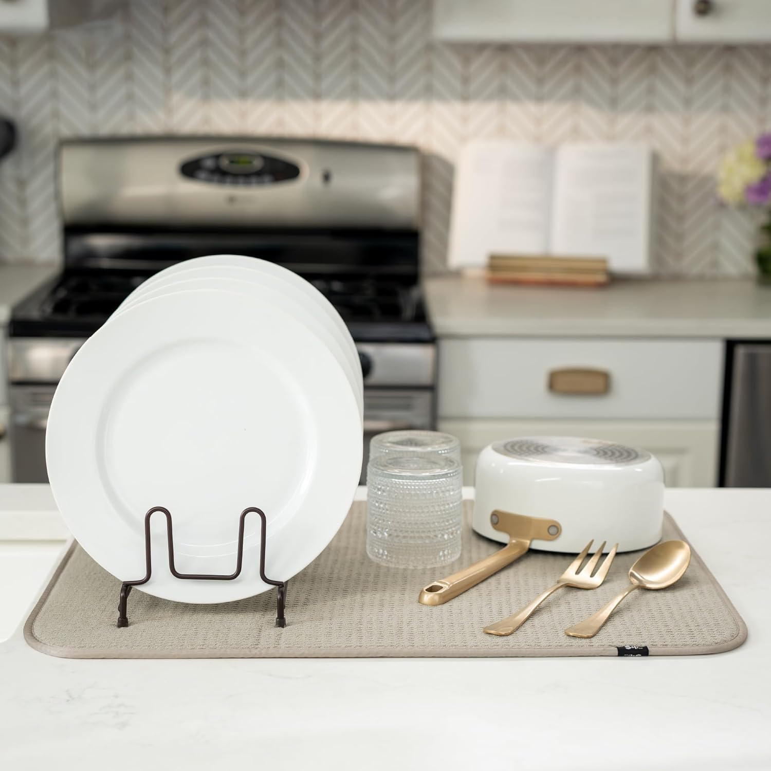 • Dish drying mats for kitchen counter are reusable, machine washable, and easy to store for kitchen organization; durable construction will not chip or break like a stone dish drying mat for kitchen