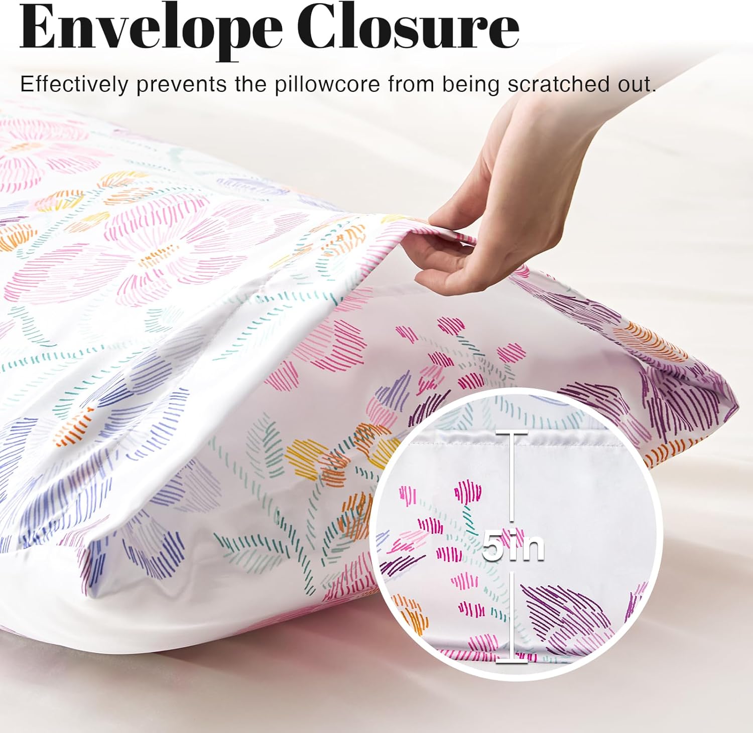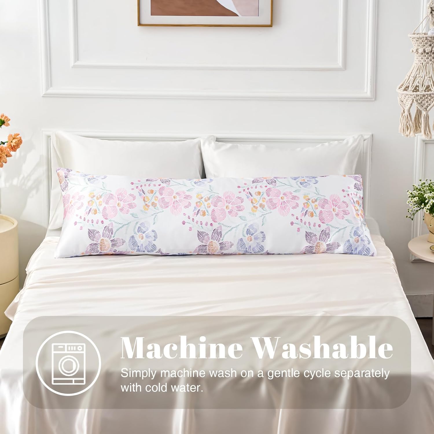EXQ Home Satin Pillowcase for Hair and Skin Body- Multicolor Printed Flower Silk Pillowcase 20x54 inches - Body Pillow Cases with Envelope Closure, Gifts for Women