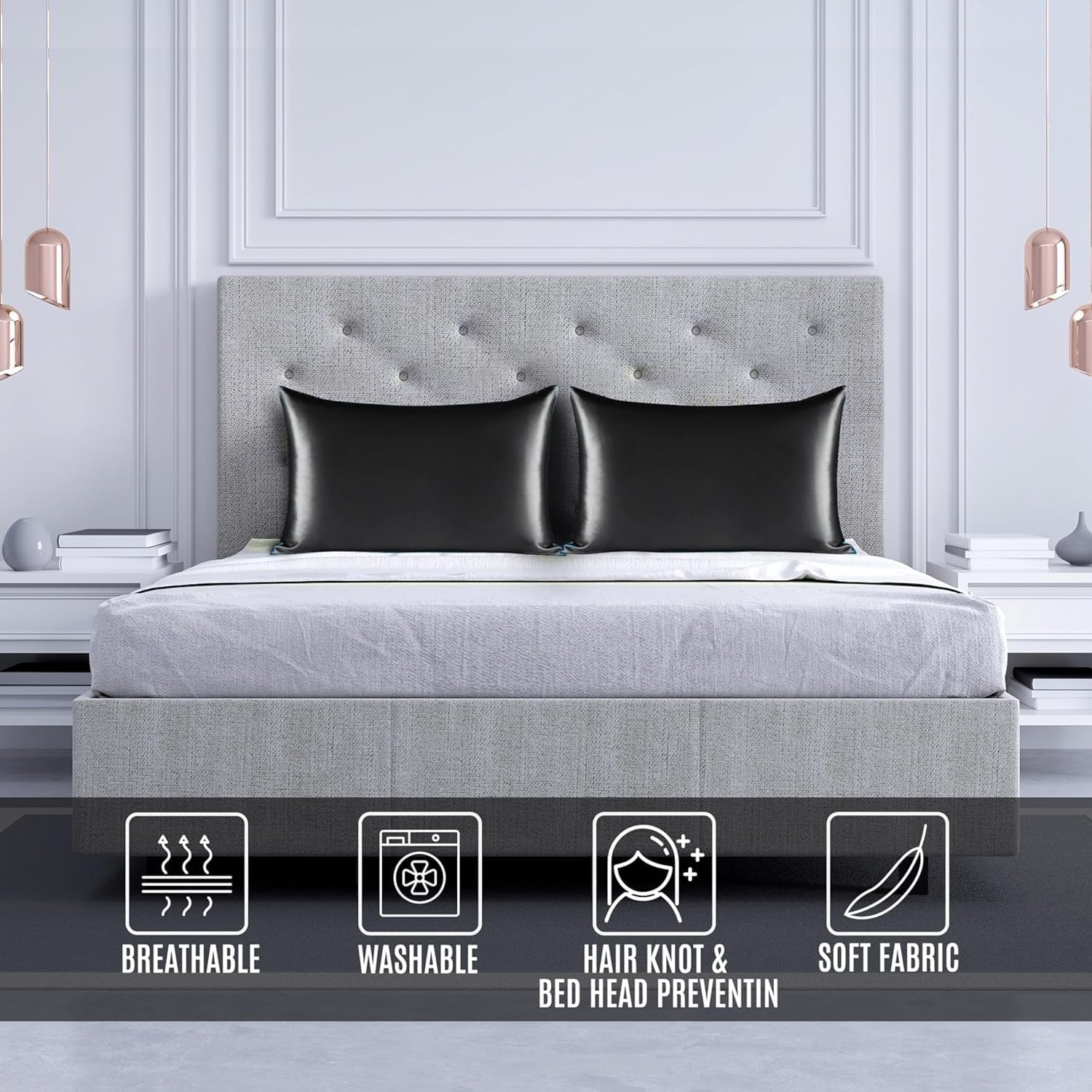 Satin Silk Pillowcase for Hair and Skin, Black Pillow Cases Standard Size Set of 4 Pack Super Soft Pillow Case with Zipper Closure (Black, Standard(4 Pack))