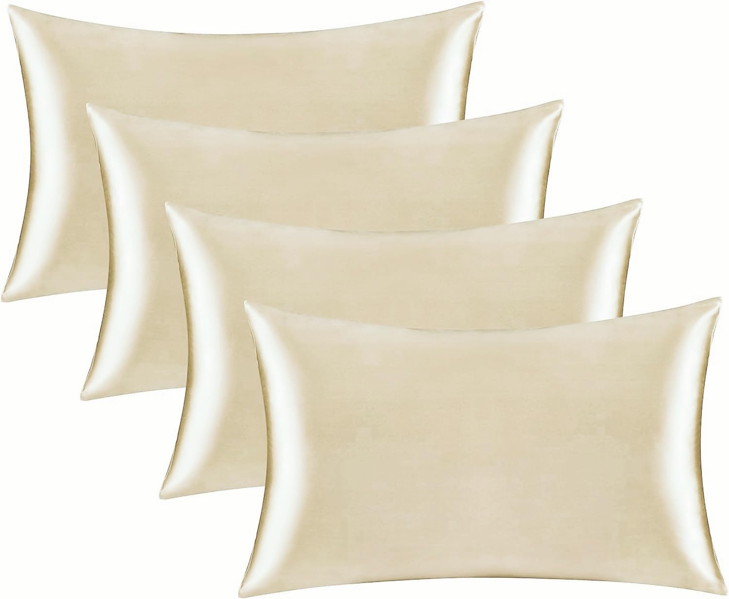 Satin Silk Pillowcase for Hair and Skin, Black Pillow Cases Standard Size Set of 4 Pack Super Soft Pillow Case with Zipper Closure (Beige, Standard(4 Pack))