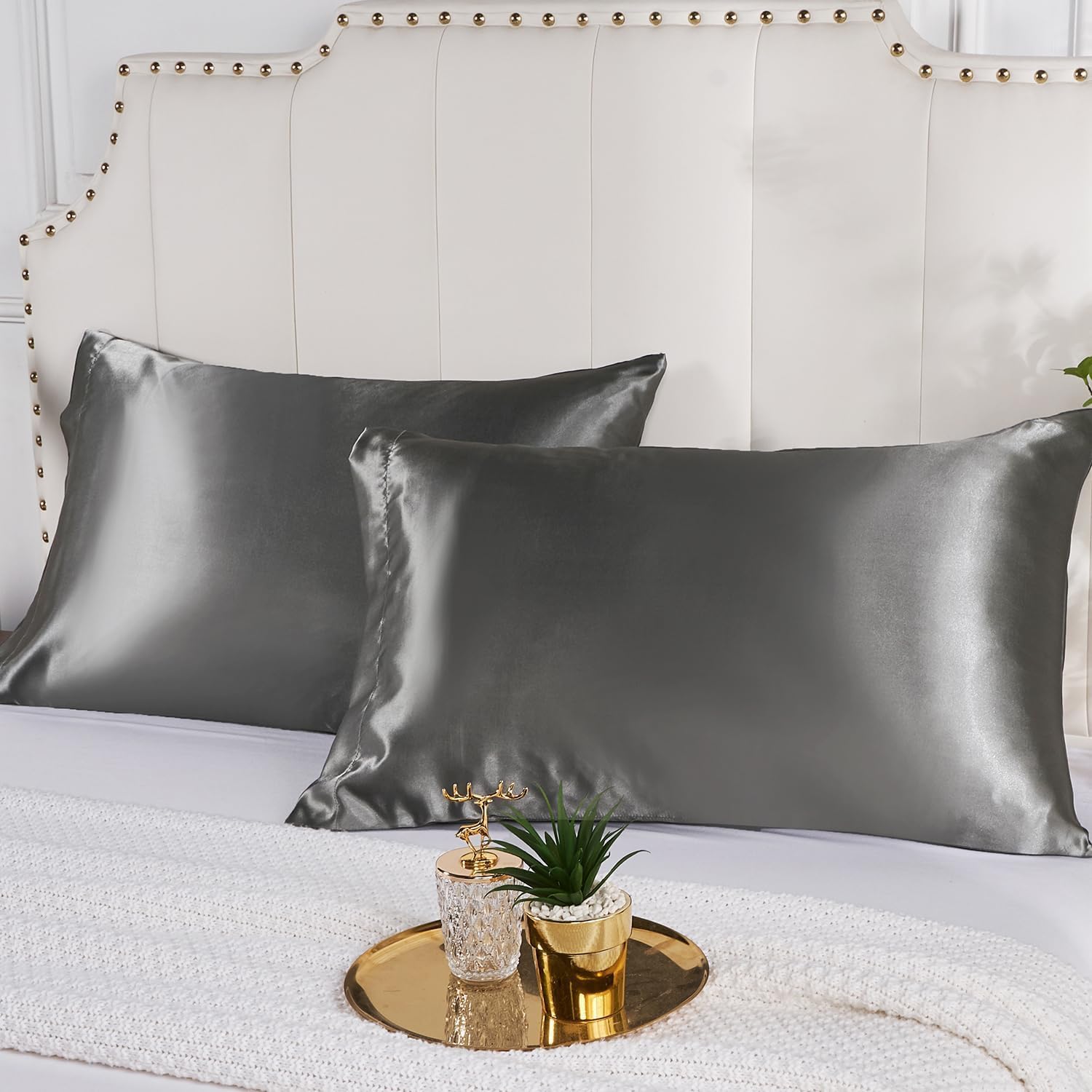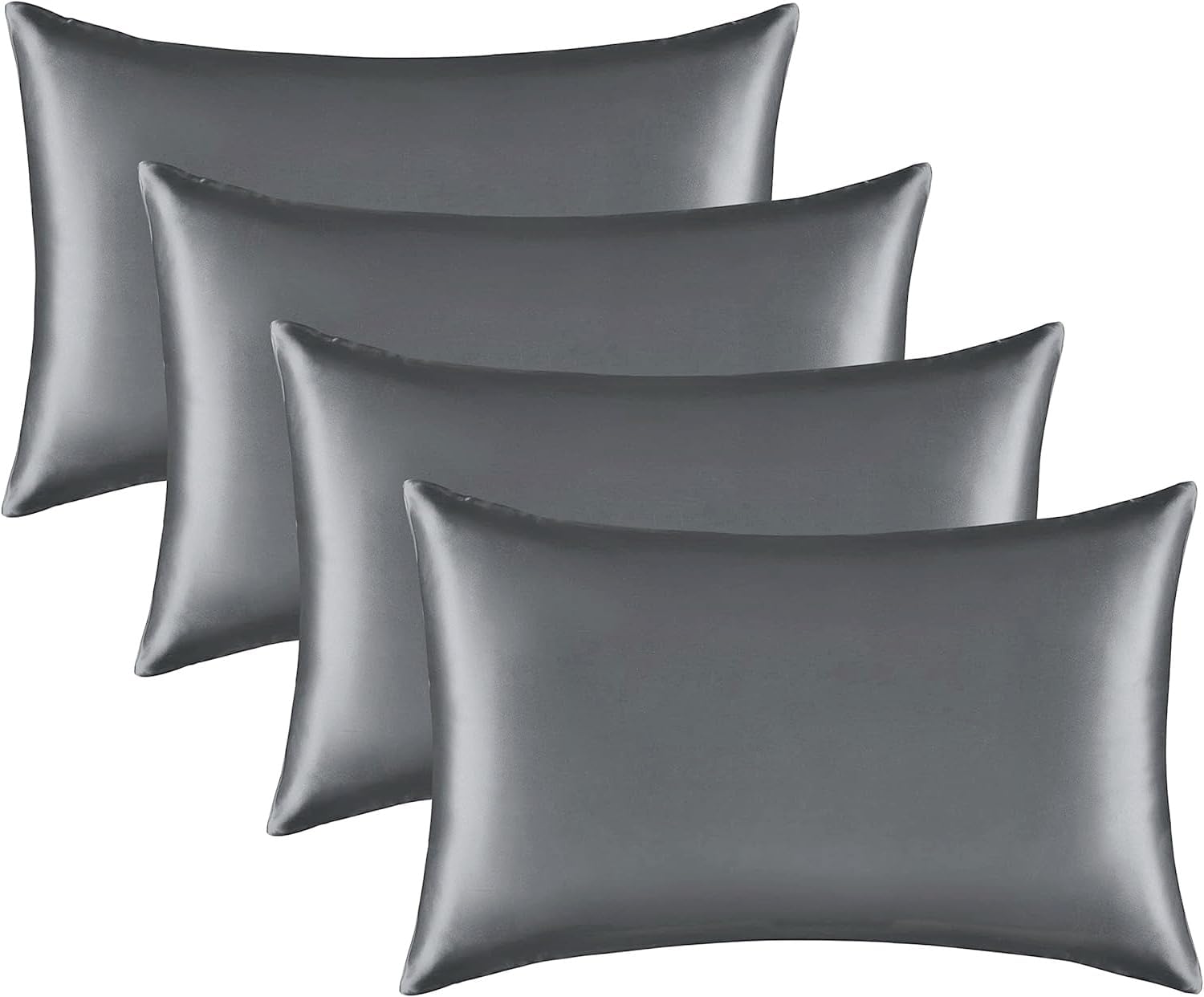 Satin Silk Pillowcase for Hair and Skin, Black Pillow Cases Standard Size Set of 4 Pack Super Soft Pillow Case with Zipper Closure (Gray, Standard(4 Pack))