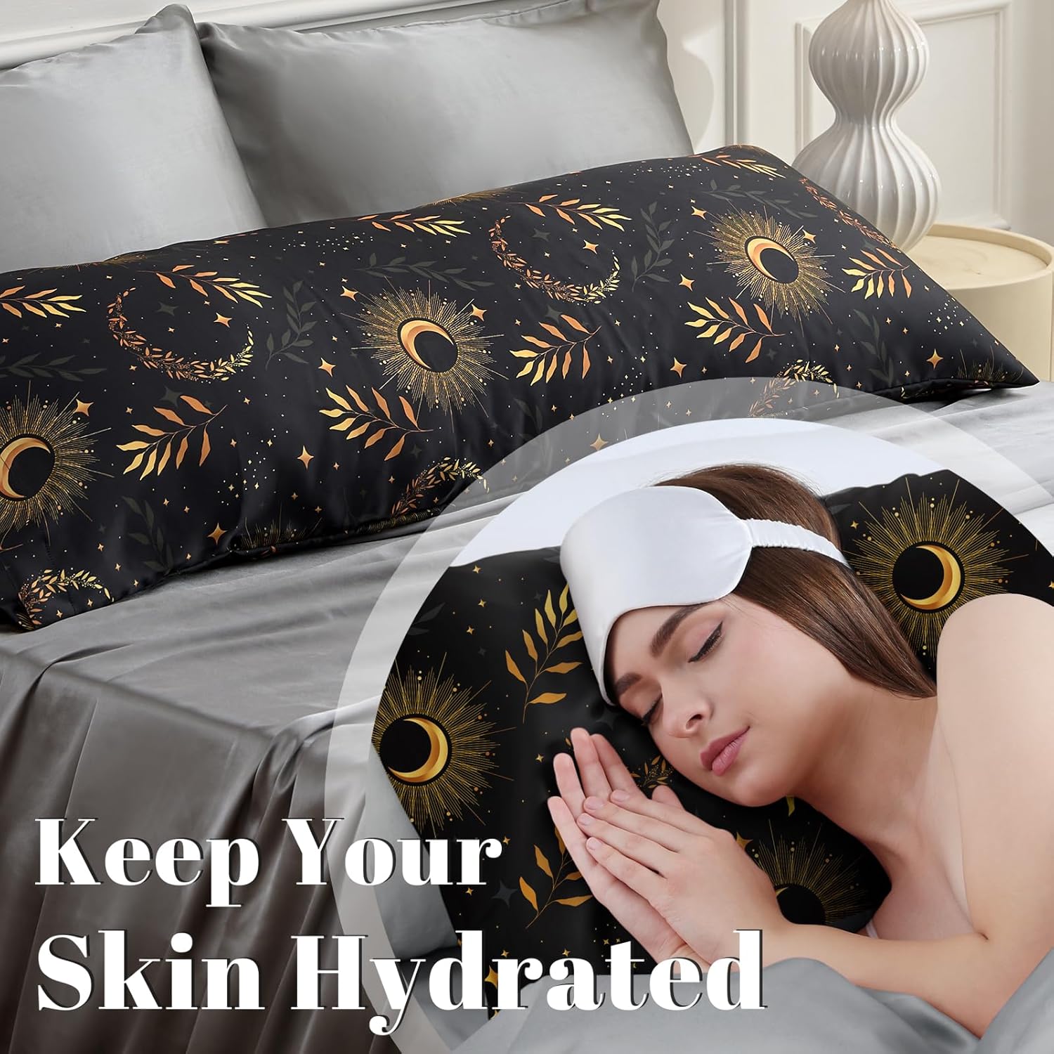 EXQ Home Satin Pillowcase for Hair and Skin Body- Multicolor Printed Black Moon Silk Pillowcase 20x54 inches - Body Pillow Cases with Envelope Closure, Gifts for Women