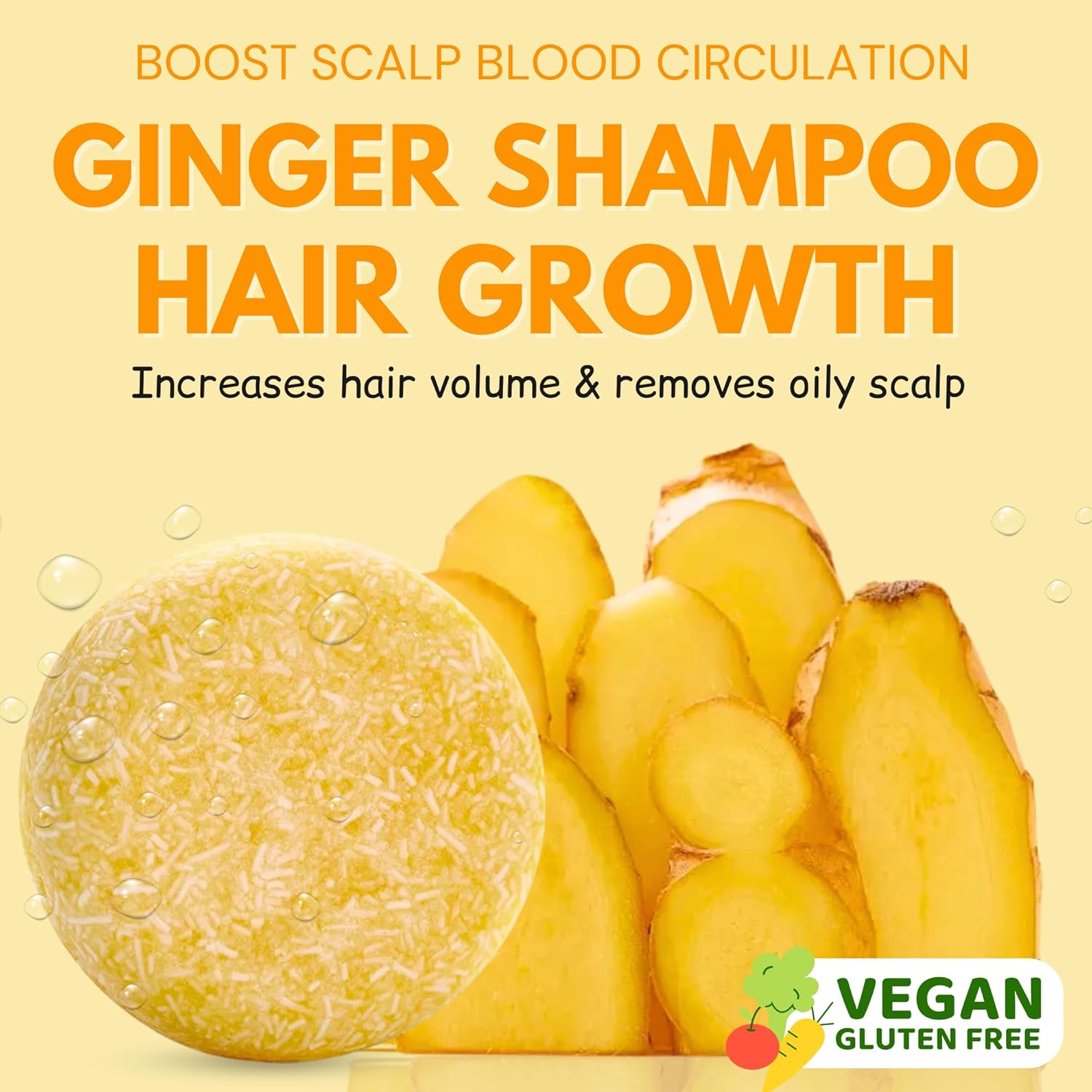 Ginger Rosemary & Rice Water Shampoo Bar Pack 3 - Hair Growth, Thickening, Strengthening, Anti Hair Loss, Volumize & pH Balanced - Sulfate & Silicone Free For All Hair Type