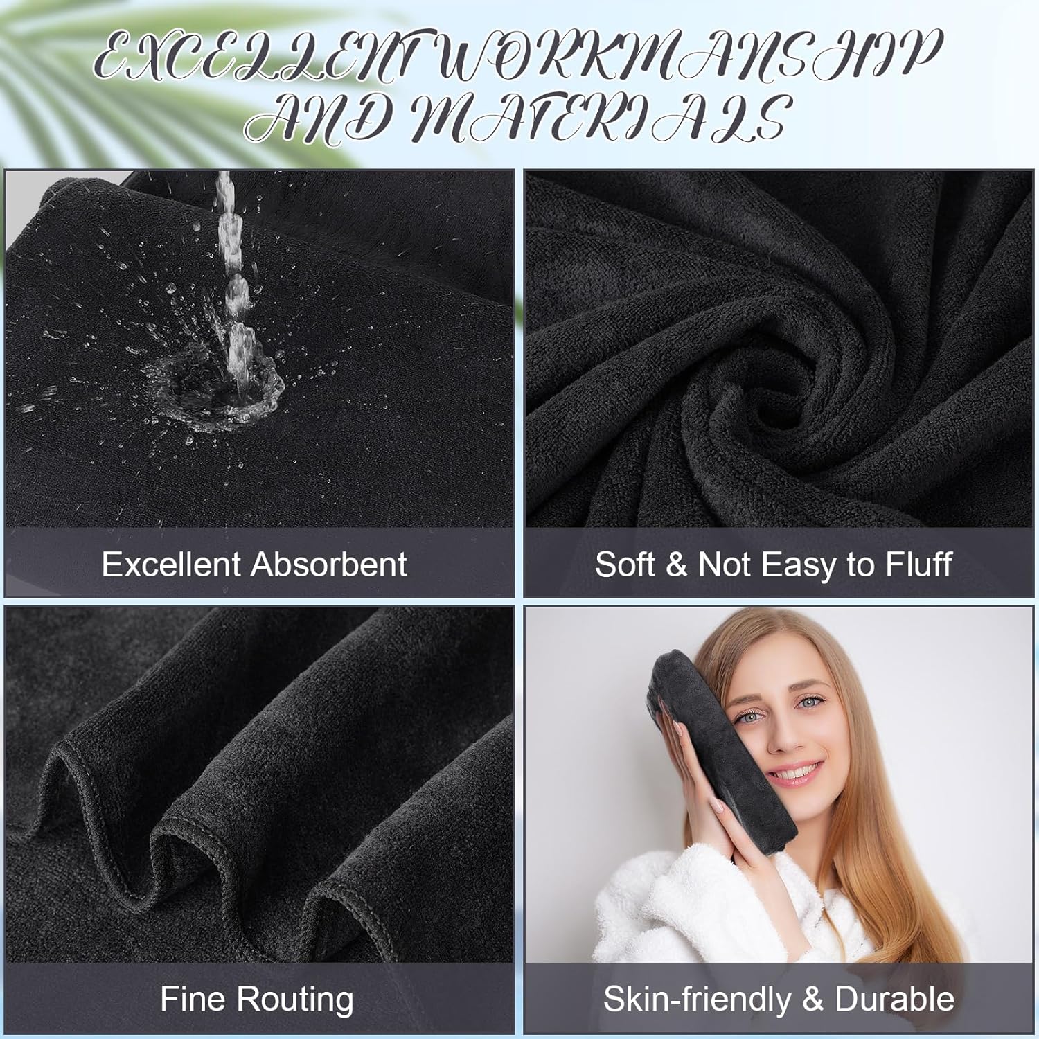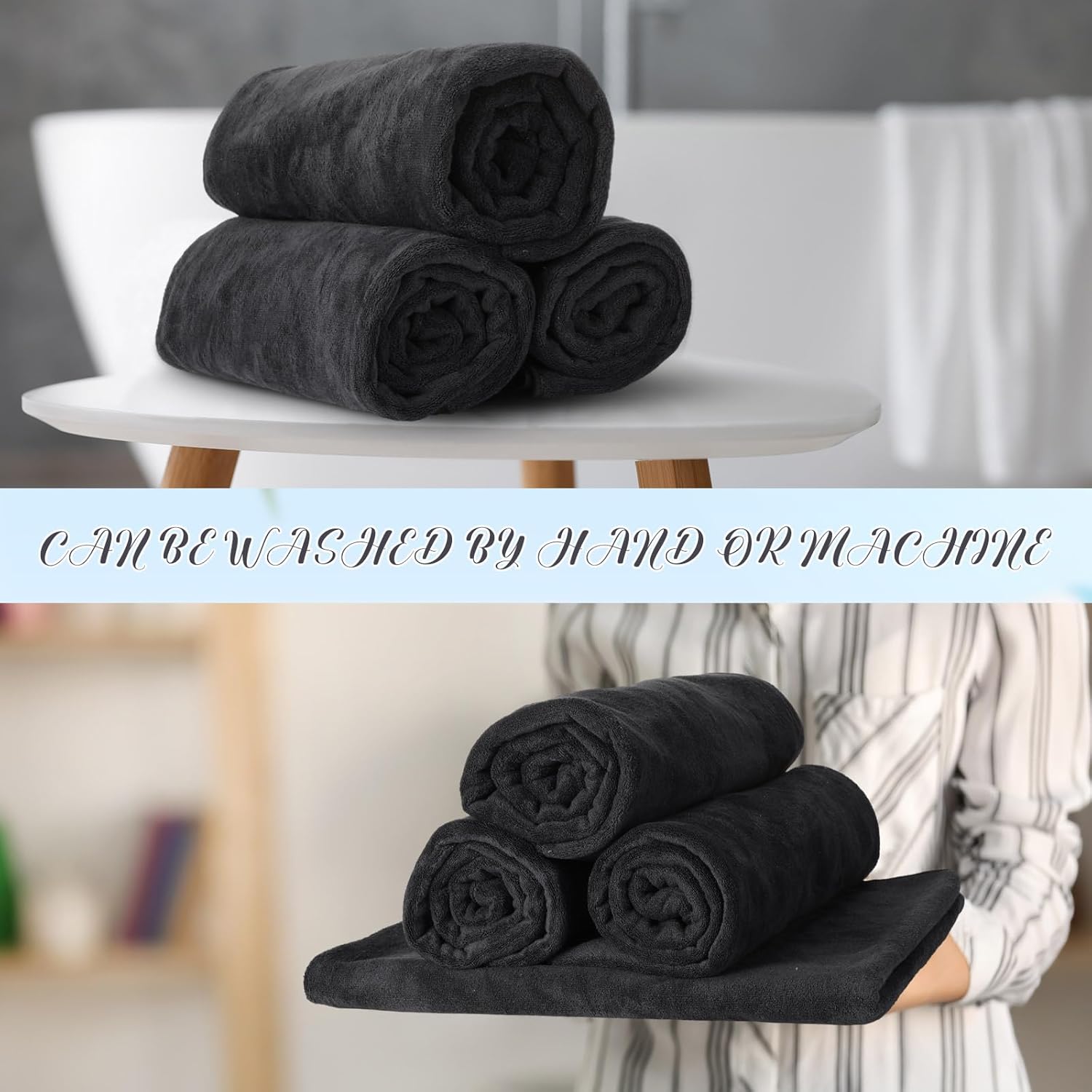16 Pack Microfiber Bath Towels Bulk 27'' x 60'' Oversized Size Bath Towel Highly Absorbent Extra Large Soft Drying for Shower Beach Salon Winter Sport Spa Gym (Simple,Black)
