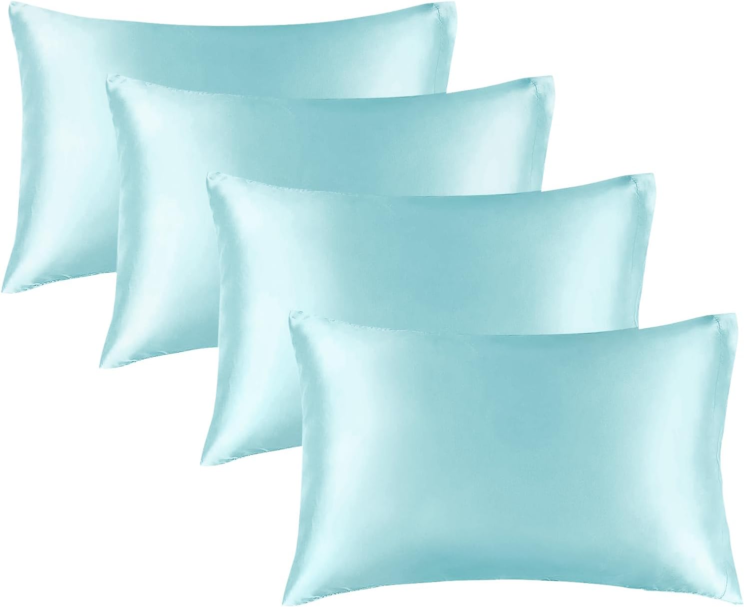 BEDELITE Satin Pillowcase for Hair and Skin, Super Soft Similar to Silk Pillow Cases 4 Pack with Envelope Closure, Cooling Pillowcases for Women Men (20"x30" Queen Size, Blue)