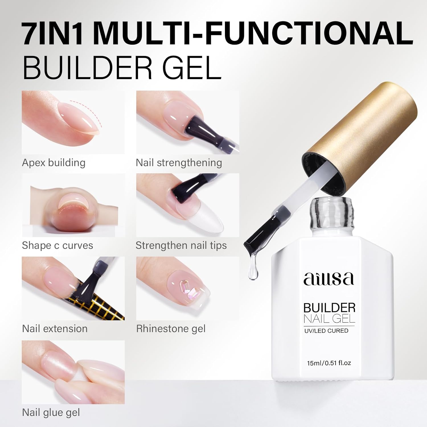 AILLSA Clear Builder Gel for Nails 7 in 1 Strengthener & Thickening Gel Polish Natural Nail Enhancement Extension Hard Gel Salon and DIY Beginner Friendly 0.51 Oz