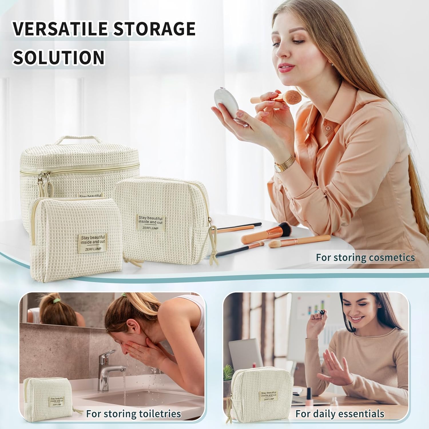 - Your Travel Companions: This adorable makeup bag set offers three sizes, making it convenient for storing various travel essentials. Perfect for organizing mobile phones, cosmetics, toiletries, headphones, coins, and more.