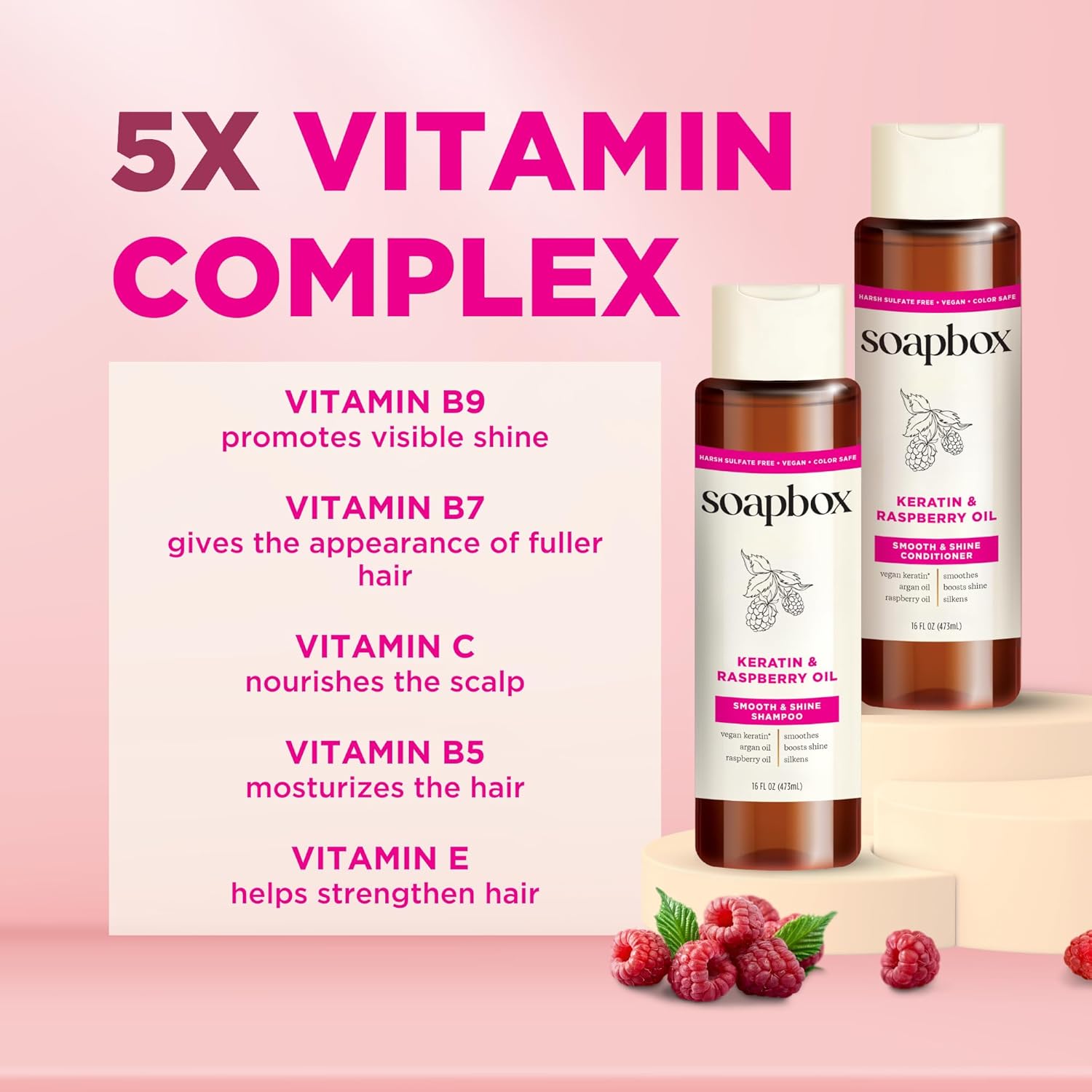 Soapbox Shine Boosting Keratin Shampoo & Conditioner Set with Argan Oil, Pack of 2 Harsh Sulfate & Paraben Free, Silicone Free, Color Safe, and Vegan Hair Products, 16 Ounces Each