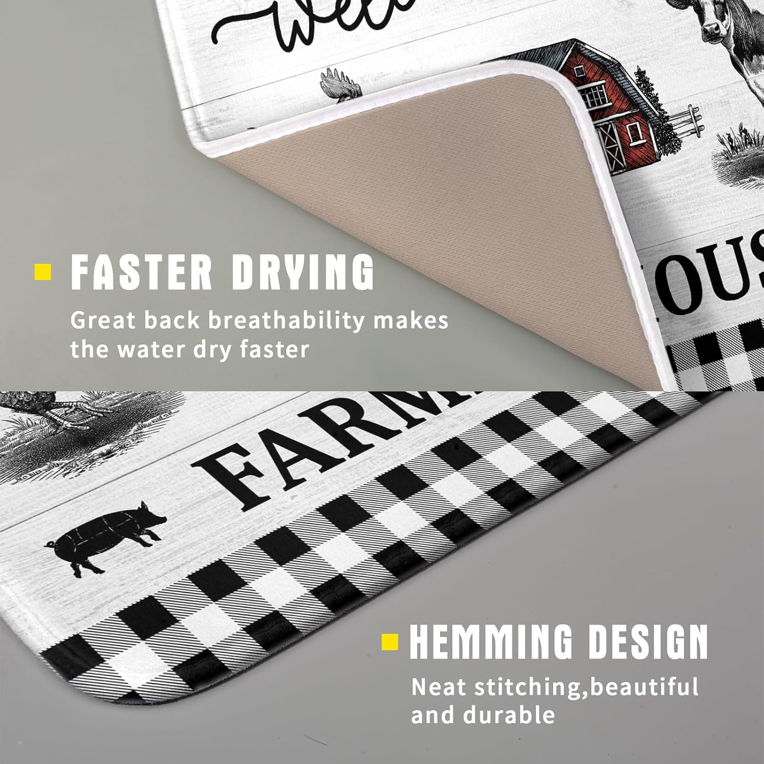 Farmhouse Barn Dish Drying Mat 16x18 Inch Cow Rooster Absorbent Microfiber Dish Drainer Rack Pad Bottles Protector for Kitchen Counter