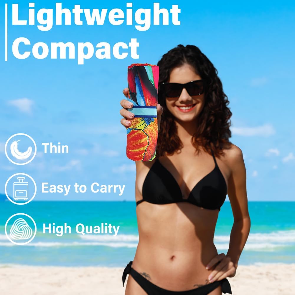 - LIGHTWEIGHT AND PORTABLE: The microfiber beach towels are made of ultra fine microfiber material that is incredibly thin and lightweight. They come with a convenient carrying strap that makes it easy to take them with you wherever you go. When folded, they are as small as a mobile phone and can easily fit in your pocket or beach bag