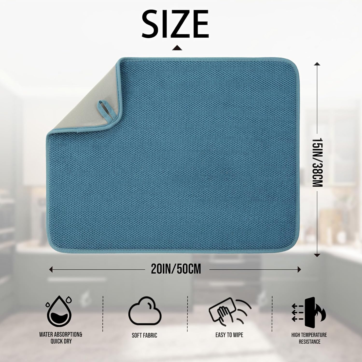 2 Pack Microfiber Dish Drying Mat for Kitchen Counter,Ultra Absorbent Dish Drainer Mat ,Dish Drying Pad ,Dish Rack Mat 20×15 Inch (Blue)