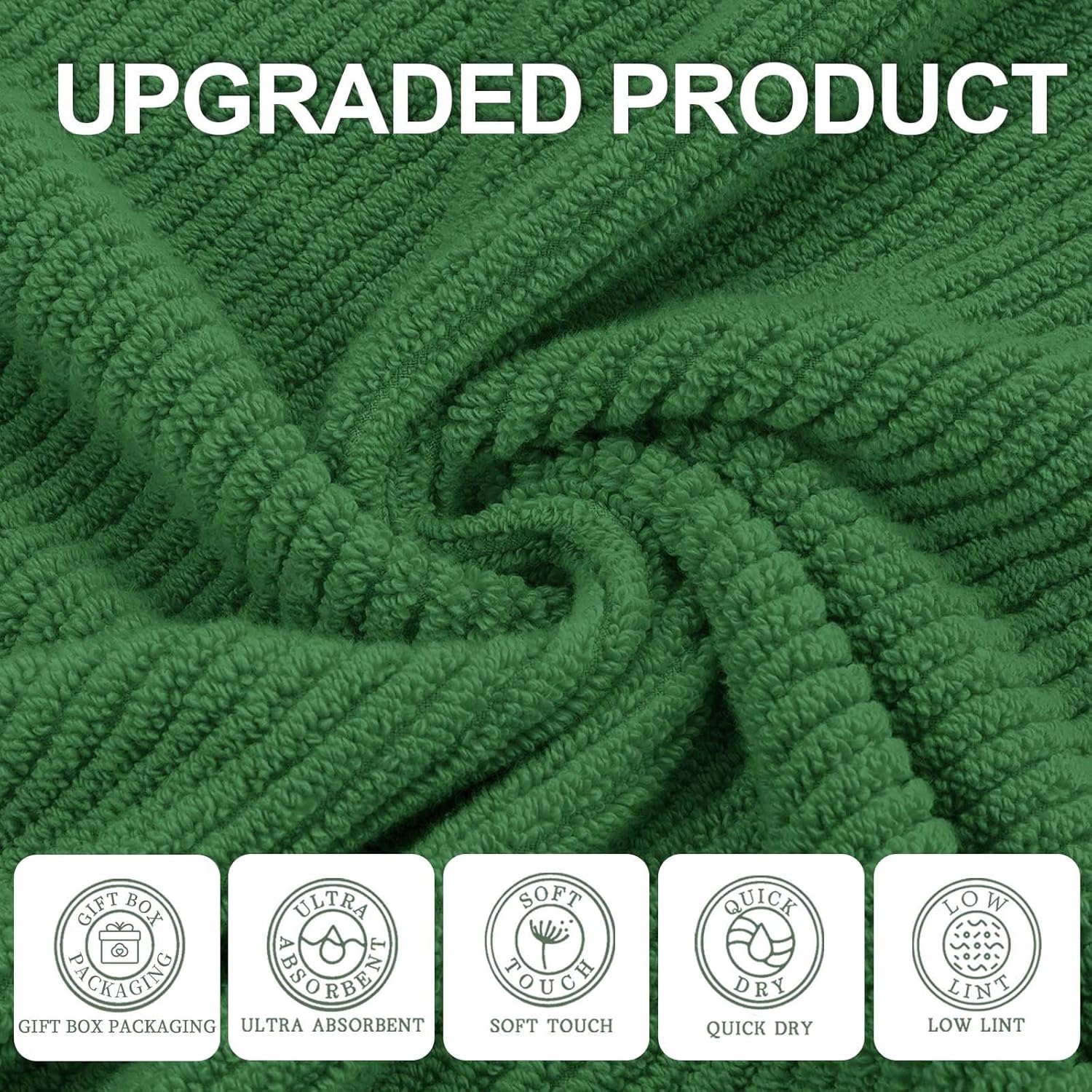 Green Towels, 6 Piece Towels Set - Cotton | Quick Dry | Thick | Lightweight | Soft, 2 Large Bath Towels 30"x56", 2 Hand Towels 18"x28", 2 Washcloths 13"x13", Luxury Towel Gift, Hunter Green