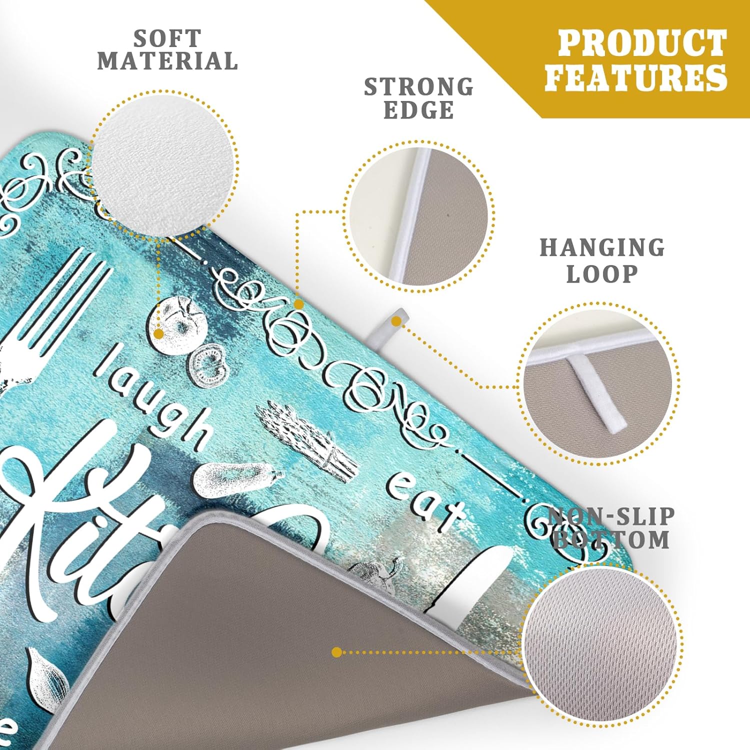- 【Easy to Storage】This blue canvas design drying mat with hang rope, soft and foldable, durable, easy to storage it by hanging or folding it up in a drawer or tuck it elsewhere. Perfect for tight spaces like campers, boats and cottages where having a dual purpose item will come in handy.