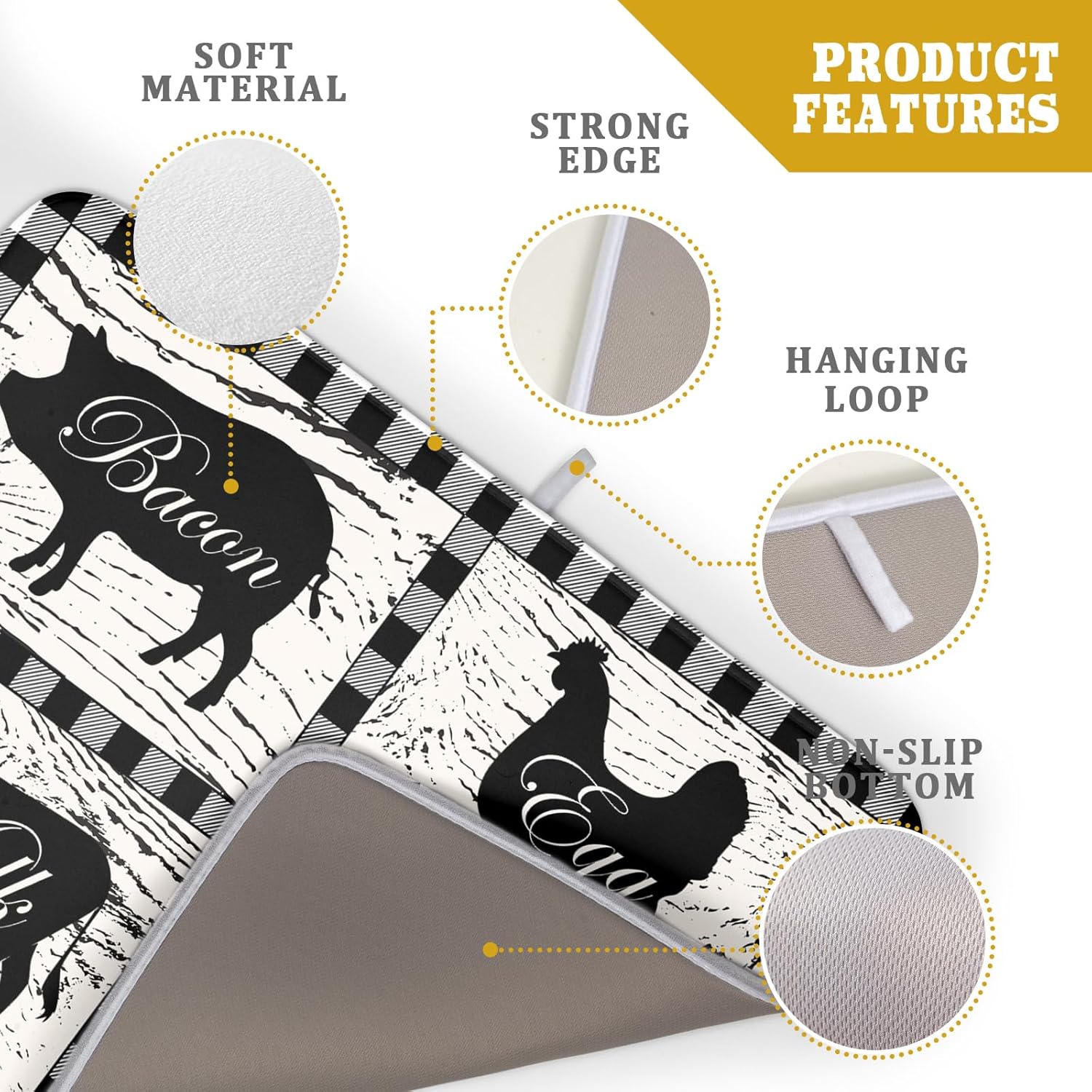 Farmhouse Animal Dish Drying Mat Buffalo Plaid Drainer Rack Mats Fast Dry Absorbent Kitchen Countertop Protector Dishes Pad 18x24 Inch