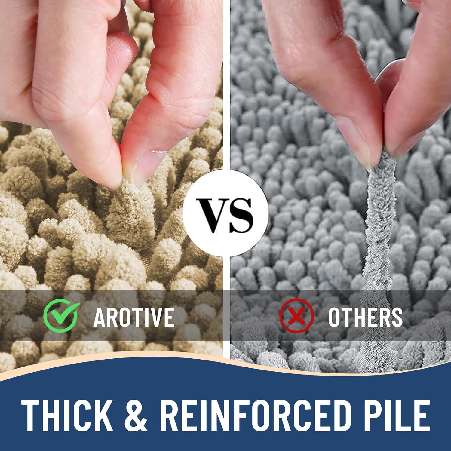 Arotive Luxury Chenille Bathroom Rug Mat, Extra Soft Thick Absorbent Shaggy Bath Rugs, Non-Slip Machine Wash Dry, Plush Bath Mats for Bathroom, Shower and Tub, 44x24, Beige