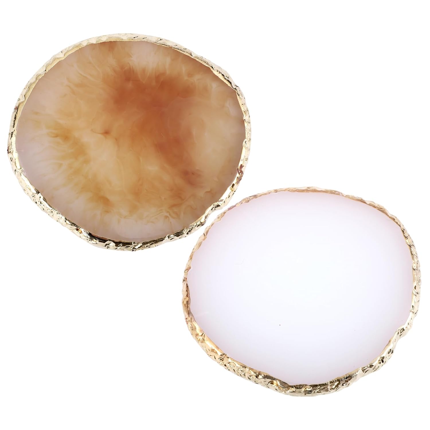 2 Pcs Resin Nail Art Palette, Nail Art Painting Mixed Color Palettes Gold Edge Nail Holder Nail Art Display Board (Coffee, White)