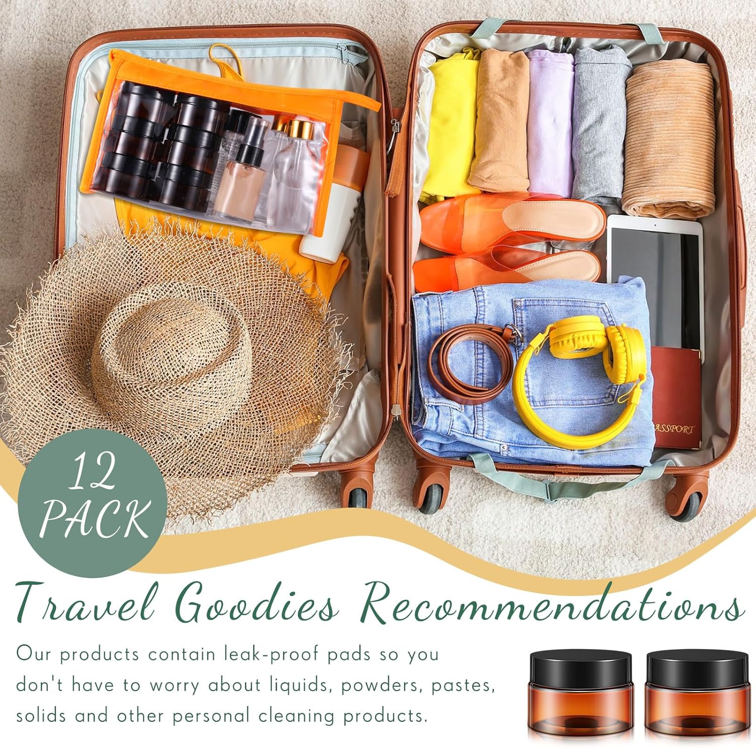 SATINIOR 12 Pack Plastic Container Jars with Lids Round Clear Travel Cosmetic Container Jars for Toiletries, Lotion, Cream, Ointments, Makeup, Rhinestone, Samples, Kitchen Storage(1 oz,Amber)