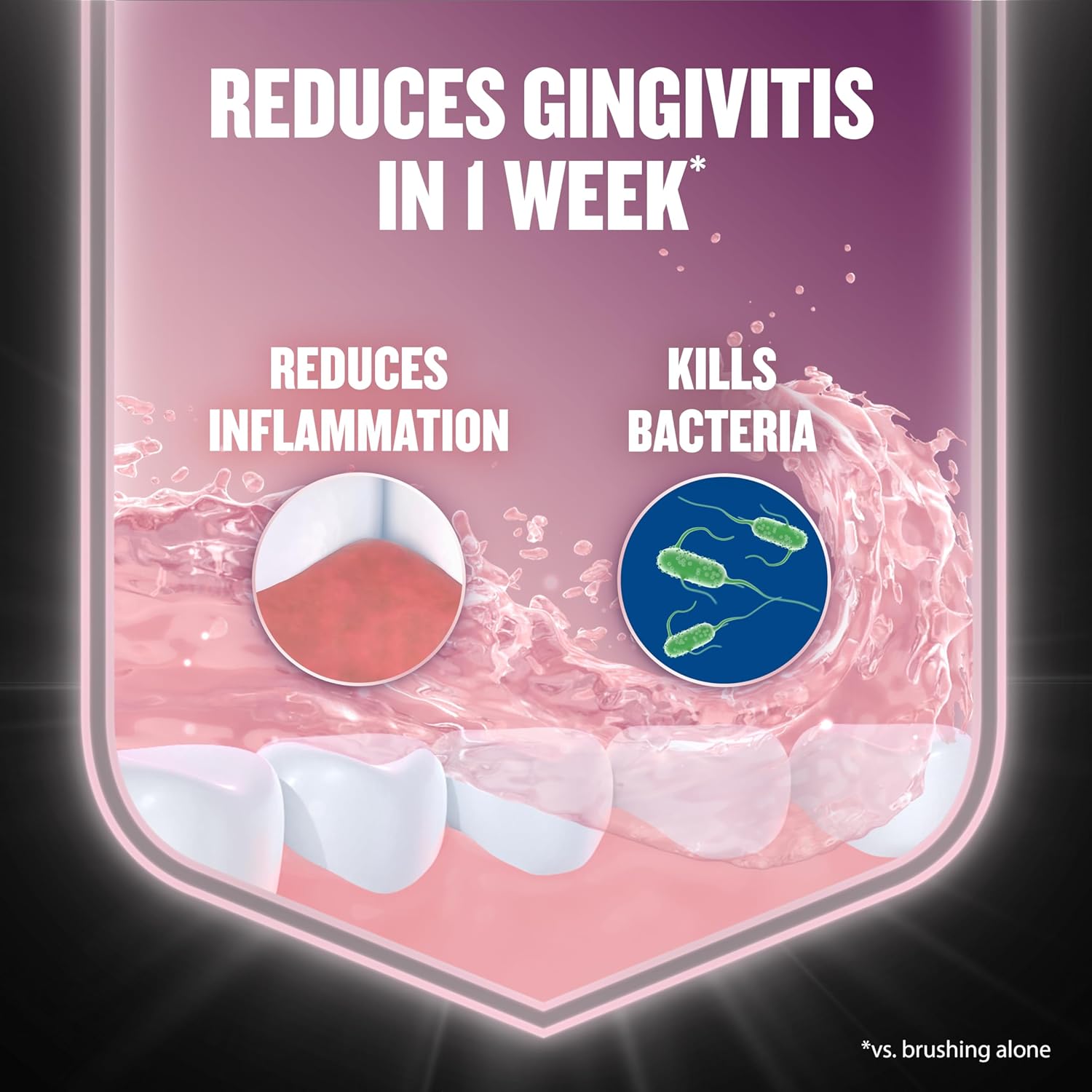 - The antigingivitis mouthwash treatment immediately kills the germs that cause bleeding gums, reduces gingivitis in 1 week* & helps maintain healthy gums for 12 weeks with continual use* *vs. brushing alone