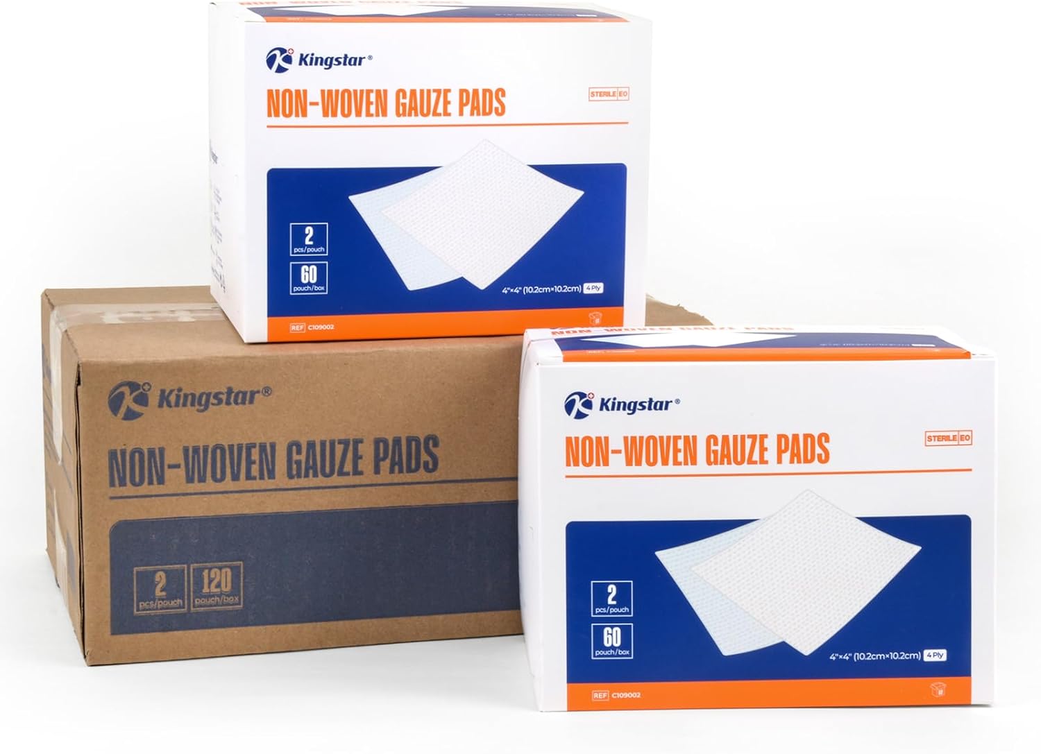 Kingstar Sterile Nonwoven Gauze Pads, 4"x 4" Wound Dressing, 120 Packs - 240 Pieces Superior Soft Sponge Pads, Higher Absorbent Gauze Compresses for Trauma or Post-Operative Wound Care