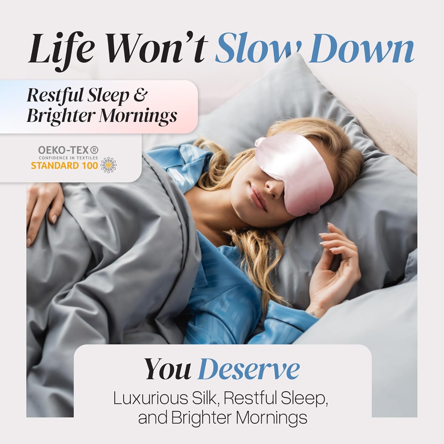 - 【Indulge In The Softness Of High Grade 100% pure 6A Mulberry Silk】Silk’s properties provide that unparalleled smooth to the skin comfort! Help keep your skin clear, reducing the chances of breakouts. Experience a luxury sleep mask that’s moisturizing, hypoallergenic, and gentle on the skin. Made with OEKO-TEX certified, non-toxic materials, ensuring it’s safe and free from harmful substances. Your skin will thank you!