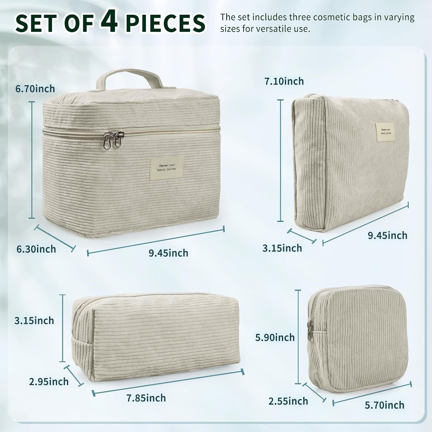 4 Pcs Makeup Bag for Women Corduroy Cosmetic Bag Aesthetic Cute Bags Multi Size Purse Pouch Travel Toiletry Bag Set Makeup Organizer with Zipper(Beige)