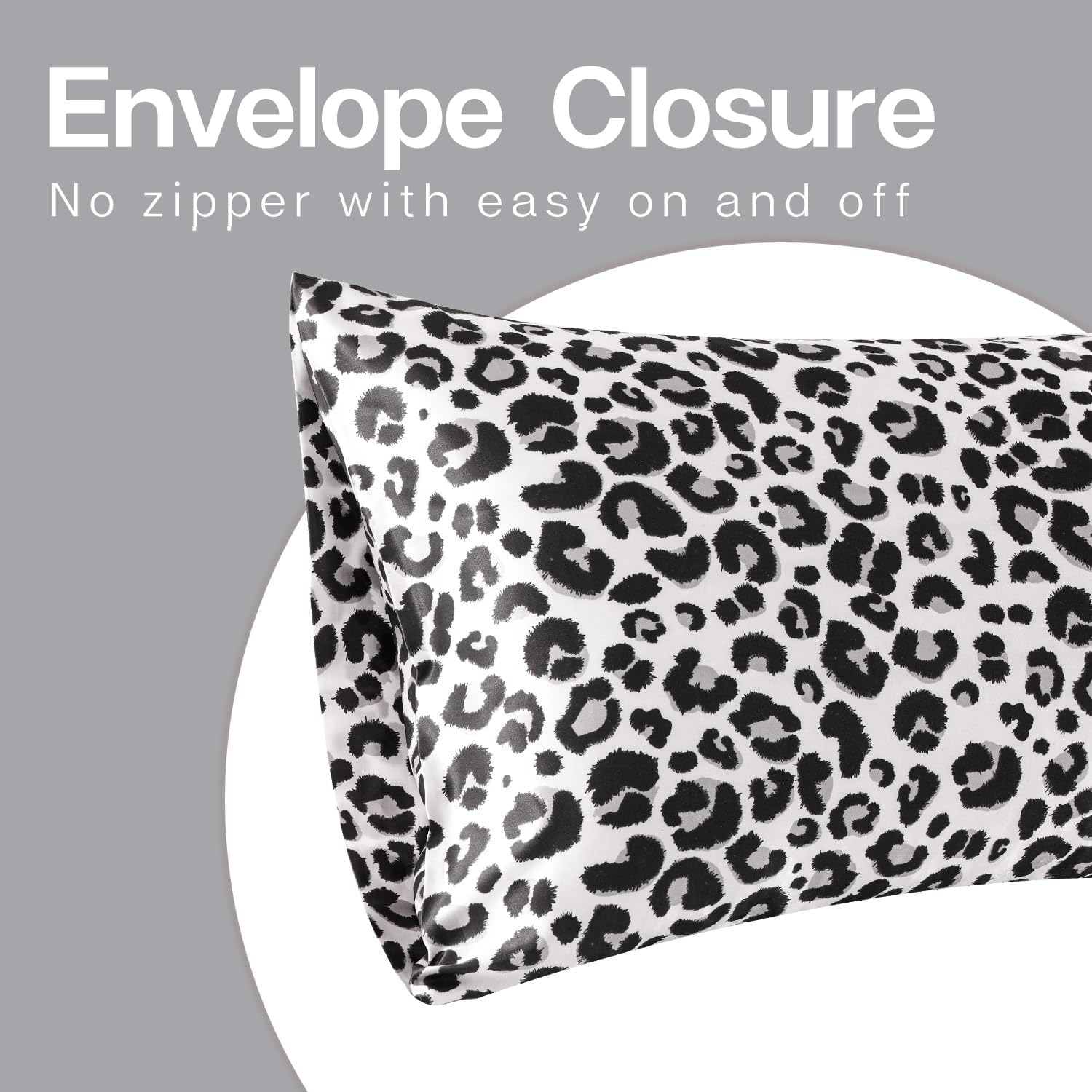 MR&HM Satin Body Pillow Cover, Soft and Breathable Body Pillow Case with Envelope Closure, Cooling and Silky Long Pillowcase for Hair and Skin,Grey (20x54, White Leopard)