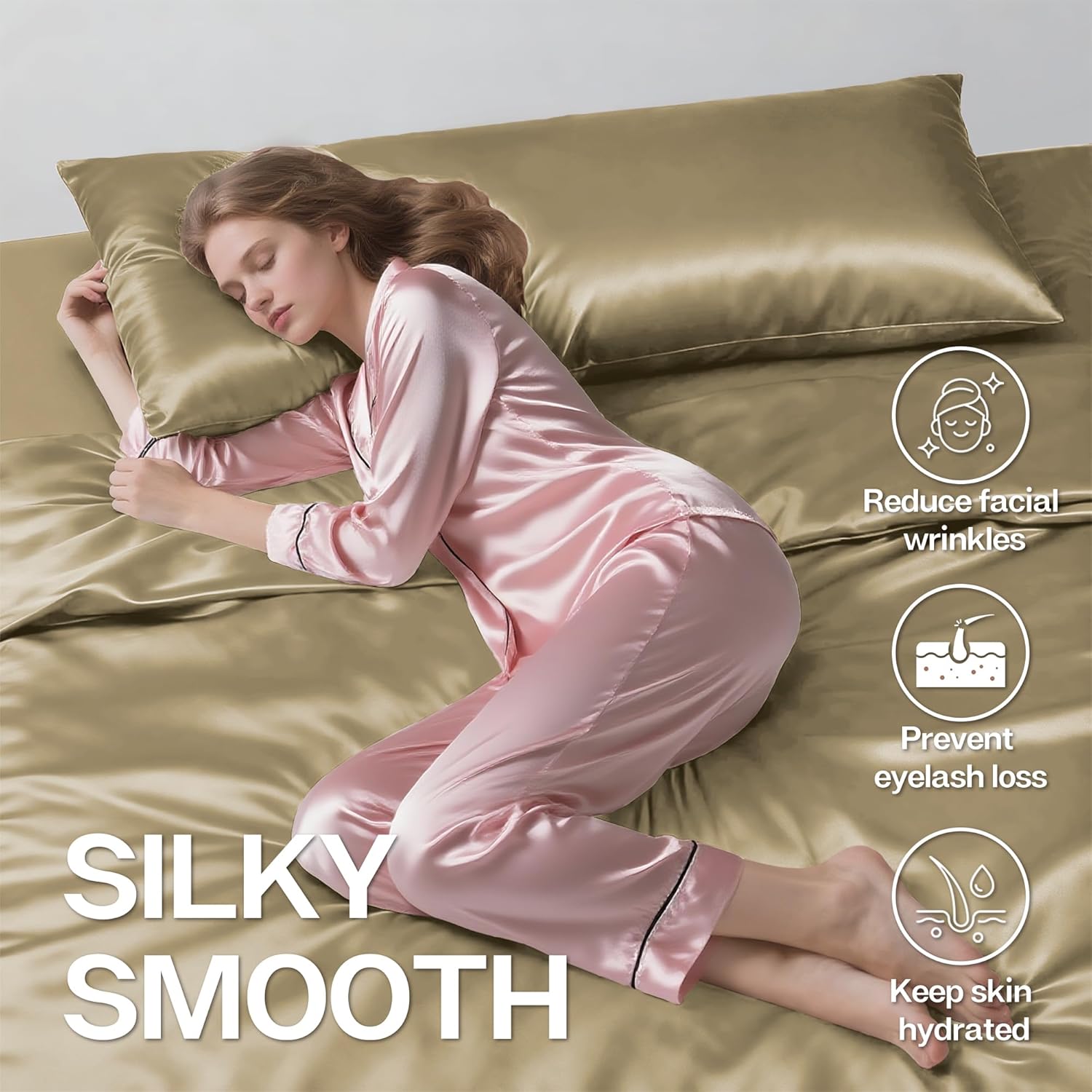 - 【Enhance Your Beauty Sleep】Sleeping on our hypoallergenic non-irritating satin pillowcase can help your skin, too. With less friction tugging at your skin as you sleep, you will experience fewer sleep lines which can equal fewer wrinkles over time.