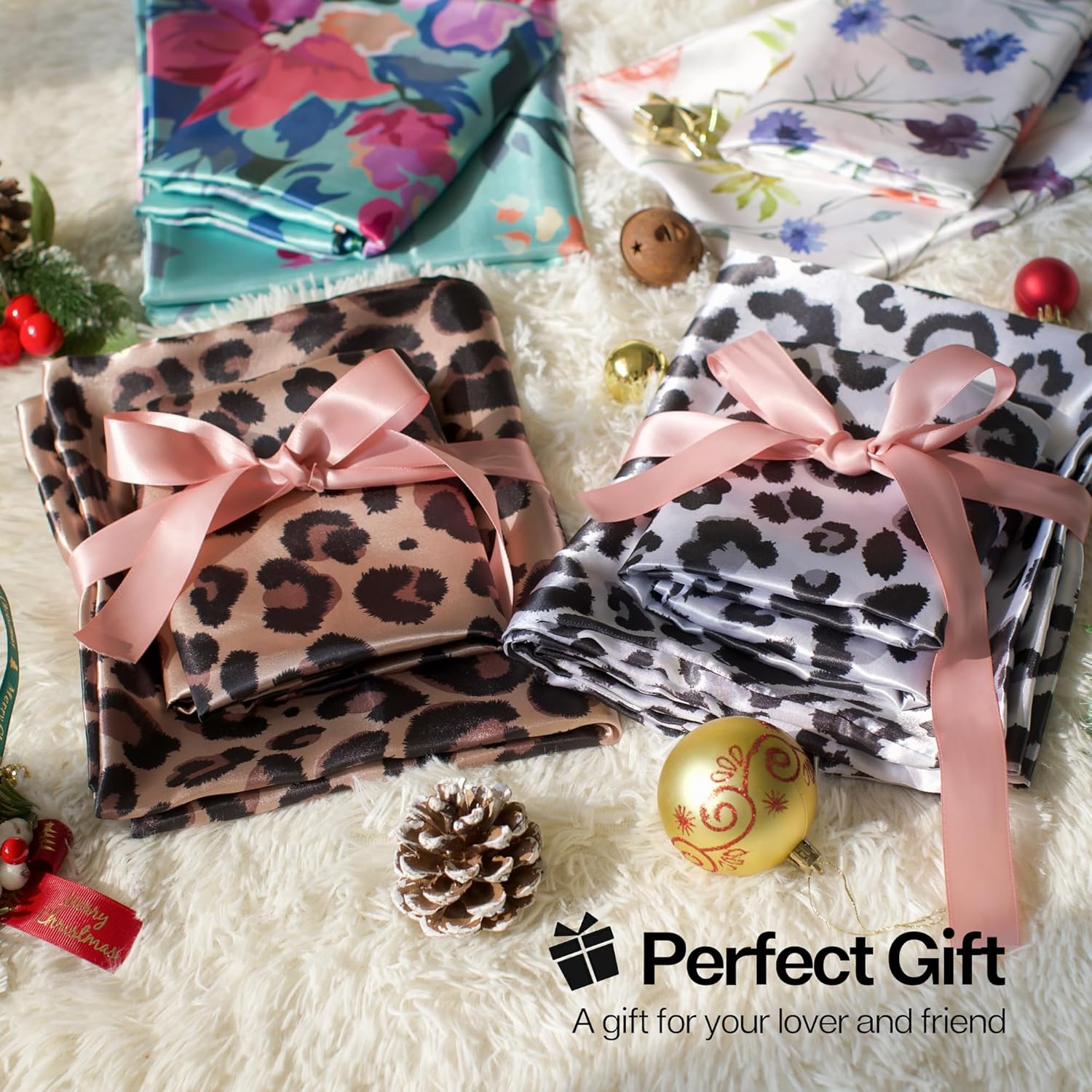 MR&HM Satin Body Pillow Cover, Soft and Breathable Body Pillow Case with Envelope Closure, Cooling and Silky Long Pillowcase for Hair and Skin,Grey (20x54, Brown Leopard)