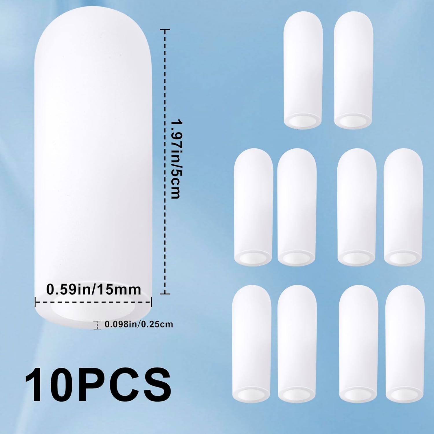 ANCIRS 10pcs Gel Finger Support Protector Caps Gloves, Gel Finger Cots/Covers, Silicone Fingertips for Hands Cracking, Eczema Skin, Trigger Finger Arthritis Pain Relief (Large, White)