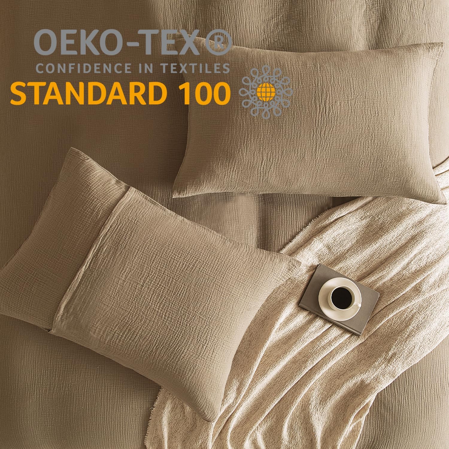 SE SOFTEXLY Muslin Pillowcases Standard Size 100% Cotton, 2 Pack Linen Like Pillow Shams with Envelope Closure, Ultral Soft and Breathable Pillow Case Covers, Light Brown, 20" X 26", No Filling