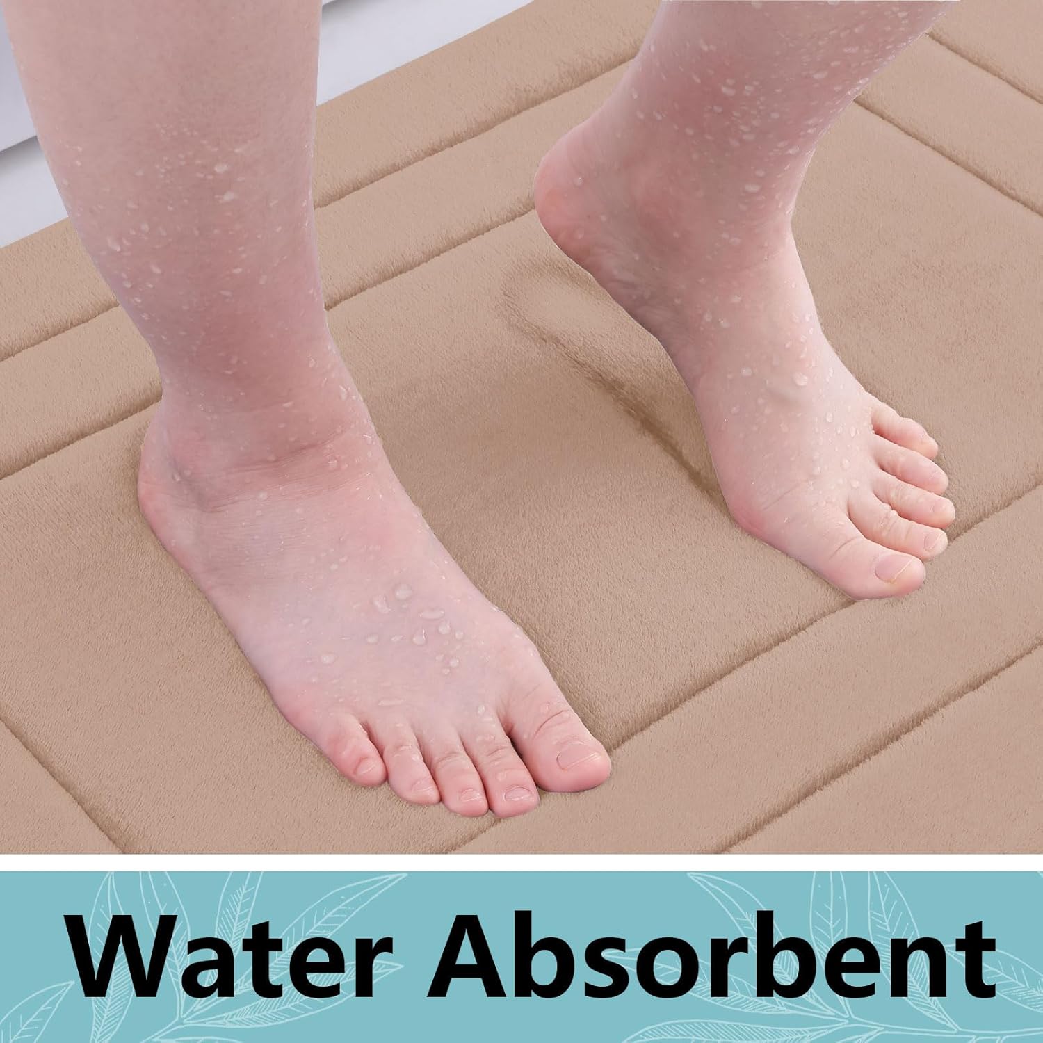 - Water Absorption : Our Memory Foam Bathroom Rug Mat features a soft flannel layer that has notable water-absorbing capability, ensuring a dry surface on the bathroom mat while keeping feet dry. Enjoy the convenience of a quick-drying and reliable bath mat