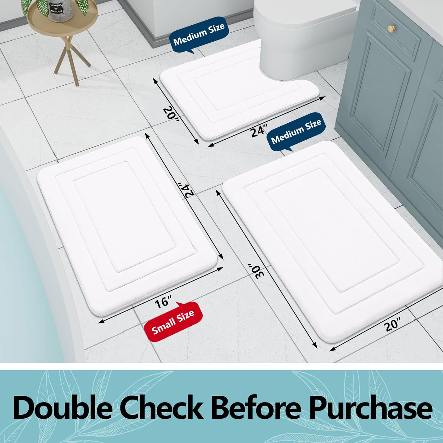 Arotive Memory Foam Bathroom Rug Mat 30x20, Ultra Soft and Absorbent Bath Mat, Machine Wash Dry, Comfortable Bath Rug Carpet for Bathroom Floor, Tub and Shower, White