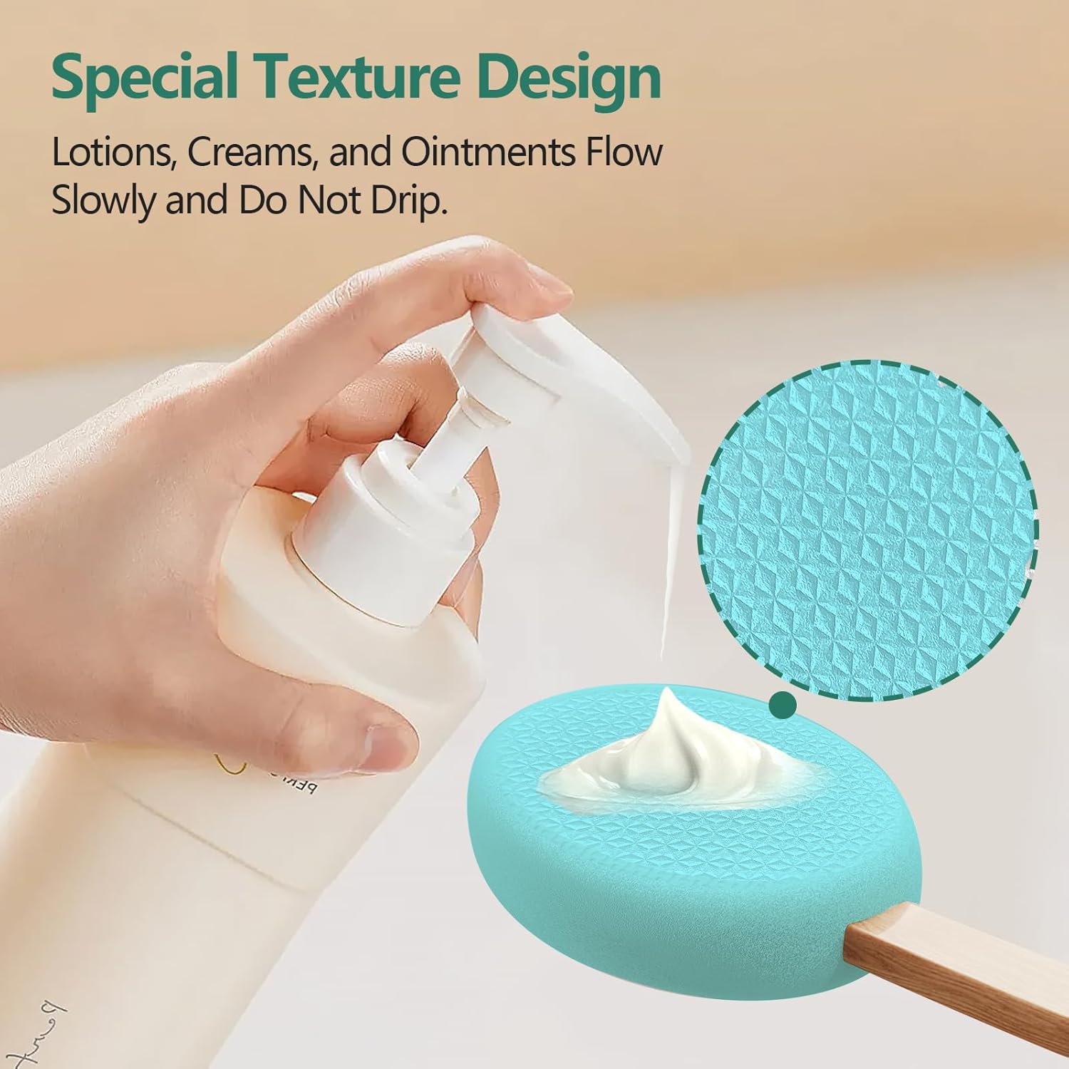 - 4 replaceable pads: Each package includes 4 replaceable pads, giving you multiple lotion applicators to enjoy. These pads are made of EVA material and texture tends to be a little bit of firm, but are gentle on the skin and never absorb lotion.