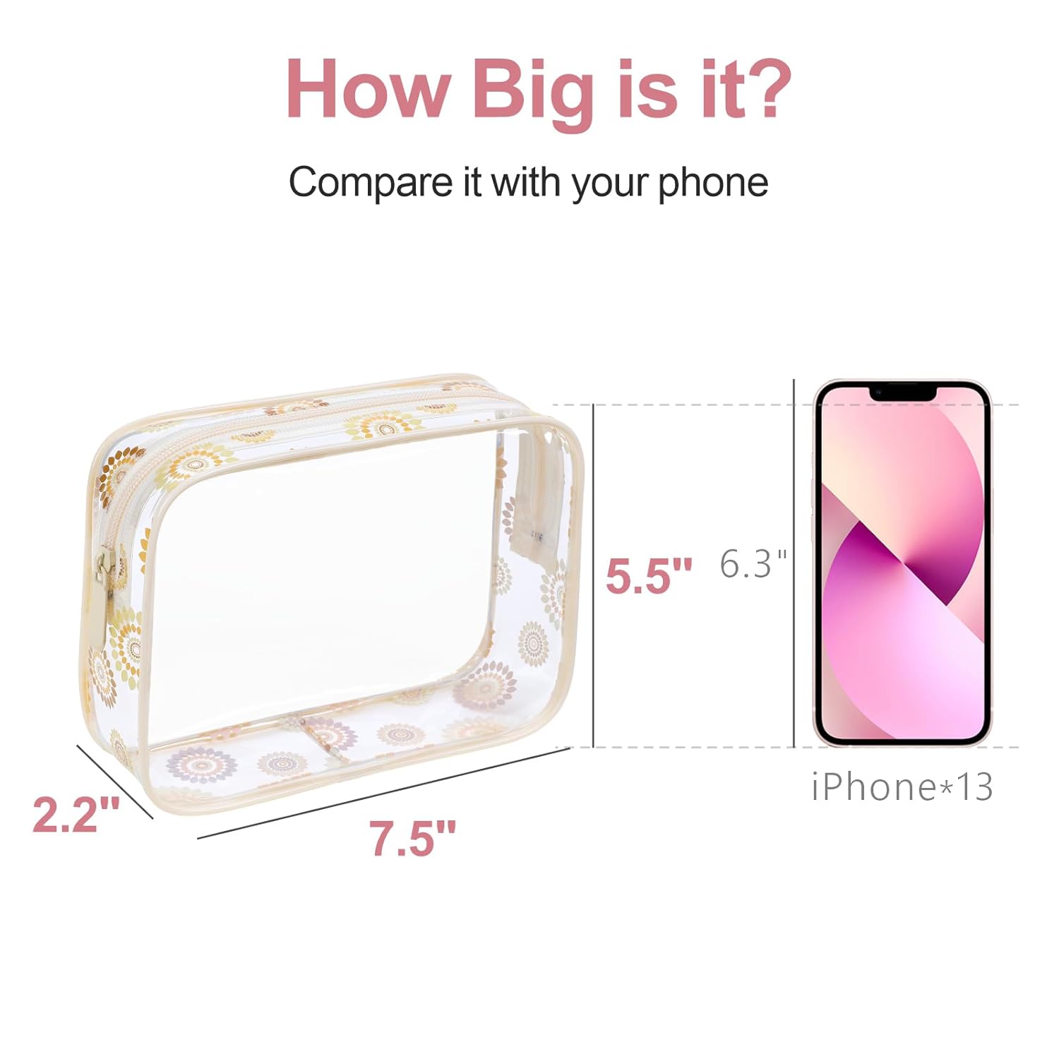- A Unique Style Can't be beaten: The chic and sweet festive pattern. Being a gift for friends, besties, loves, and mothers, This clear travel bag is so right and shines bright. A dazzling delight!