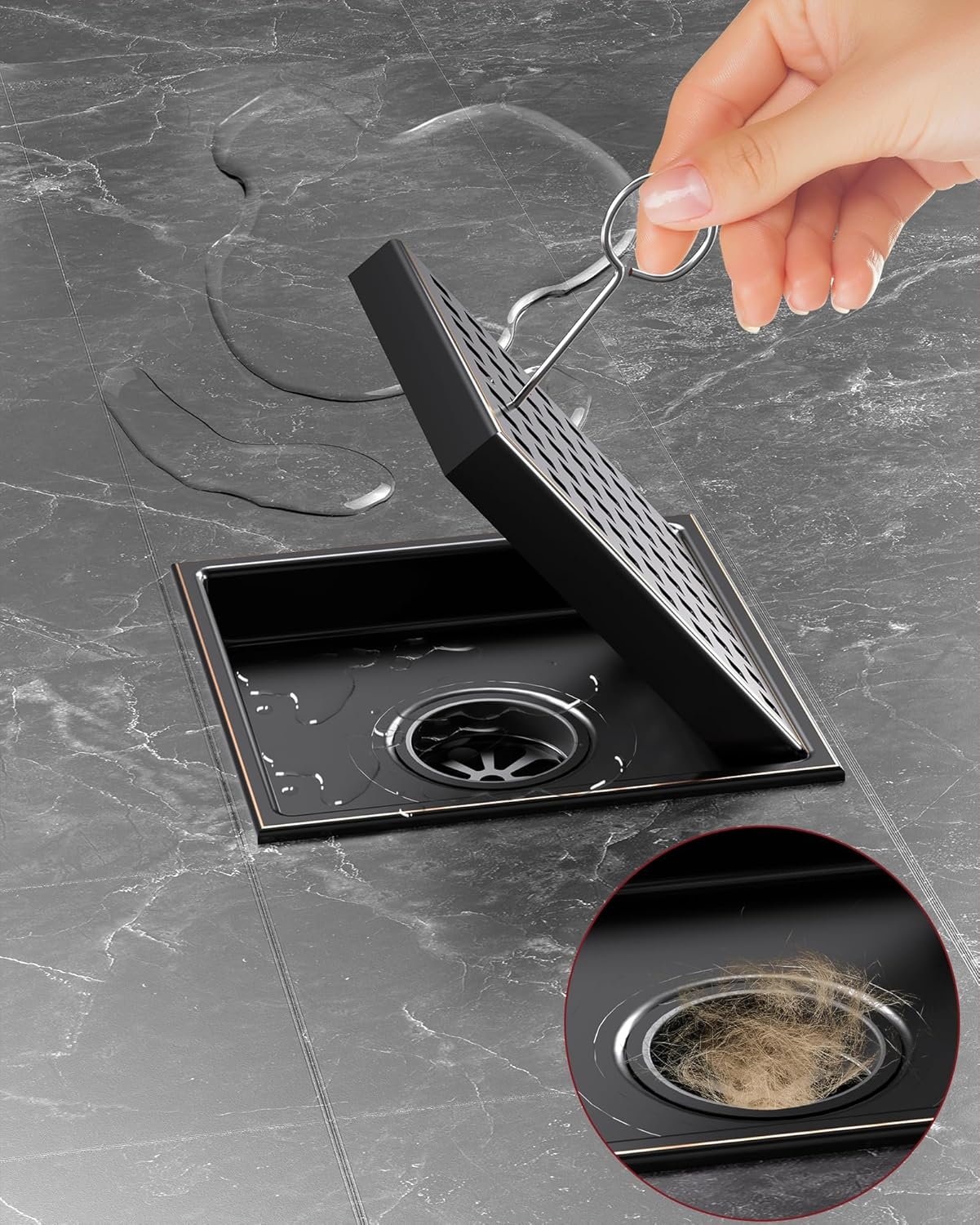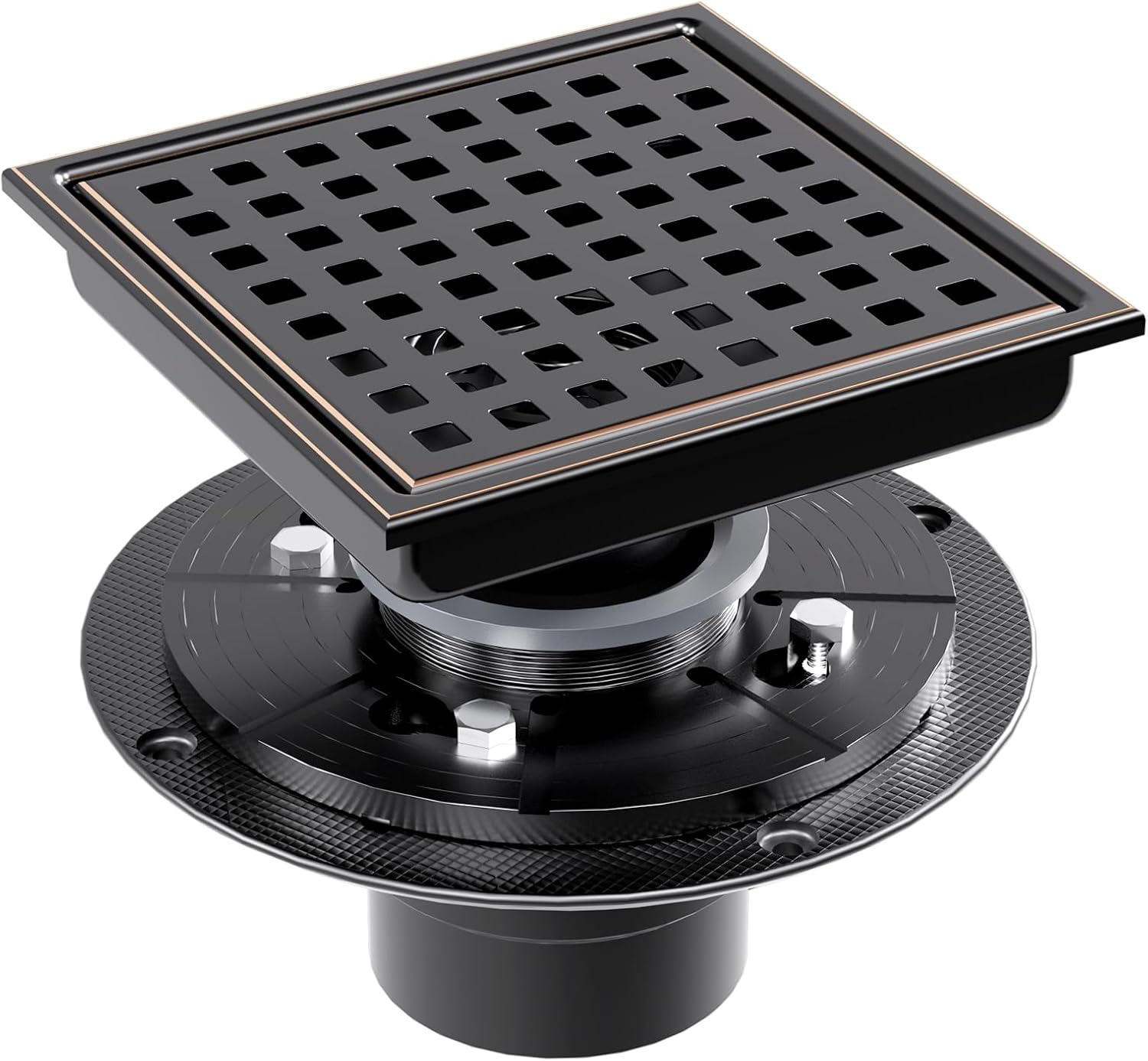 Square Shower Drain 6 Inch SUS304 Stainless Steel Bathroom Floor Drain Strainer, Hair Catcher, Anti-Clog, Rust-Resistant, Fast Drainage (Oil Rubbed Bronze)