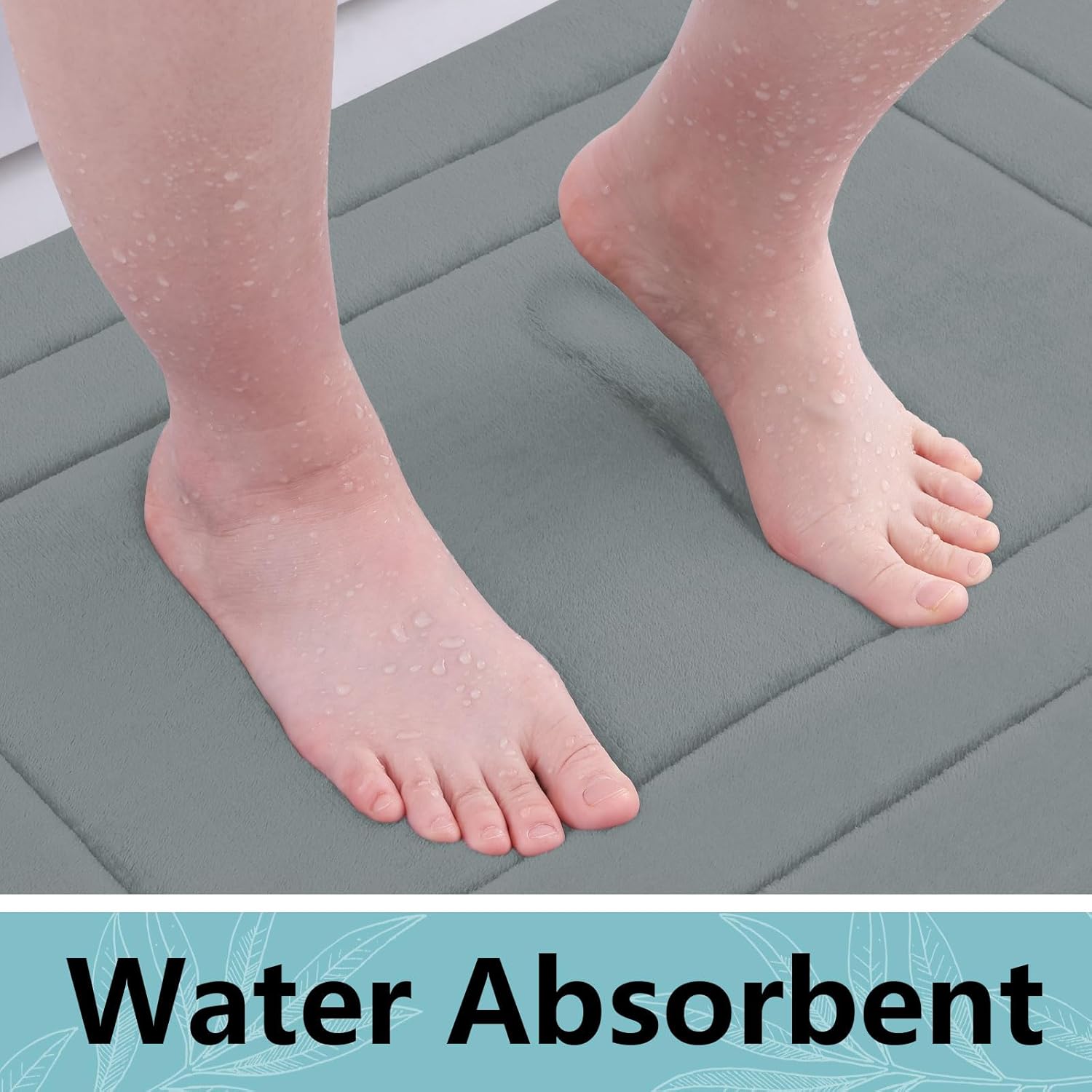 - Water Absorption : Our Memory Foam Bathroom Rug Mat features a soft flannel layer that has notable water-absorbing capability, ensuring a dry surface on the bathroom mat while keeping feet dry. Enjoy the convenience of a quick-drying and reliable bath mat