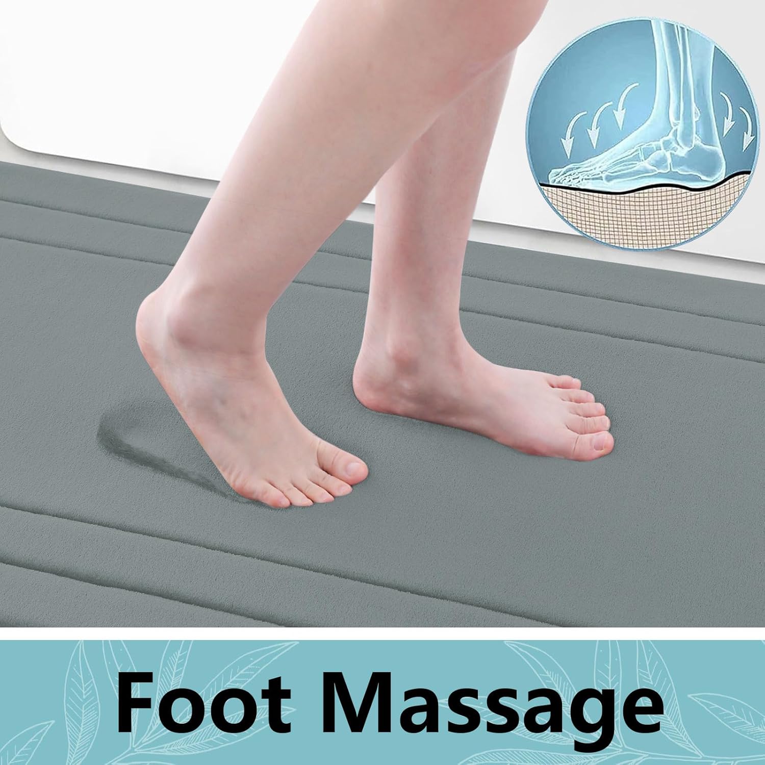 - Water Absorption : Our Memory Foam Bathroom Rug Mat features a soft flannel layer that has notable water-absorbing capability, ensuring a dry surface on the bathroom mat while keeping feet dry. Enjoy the convenience of a quick-drying and reliable bath mat