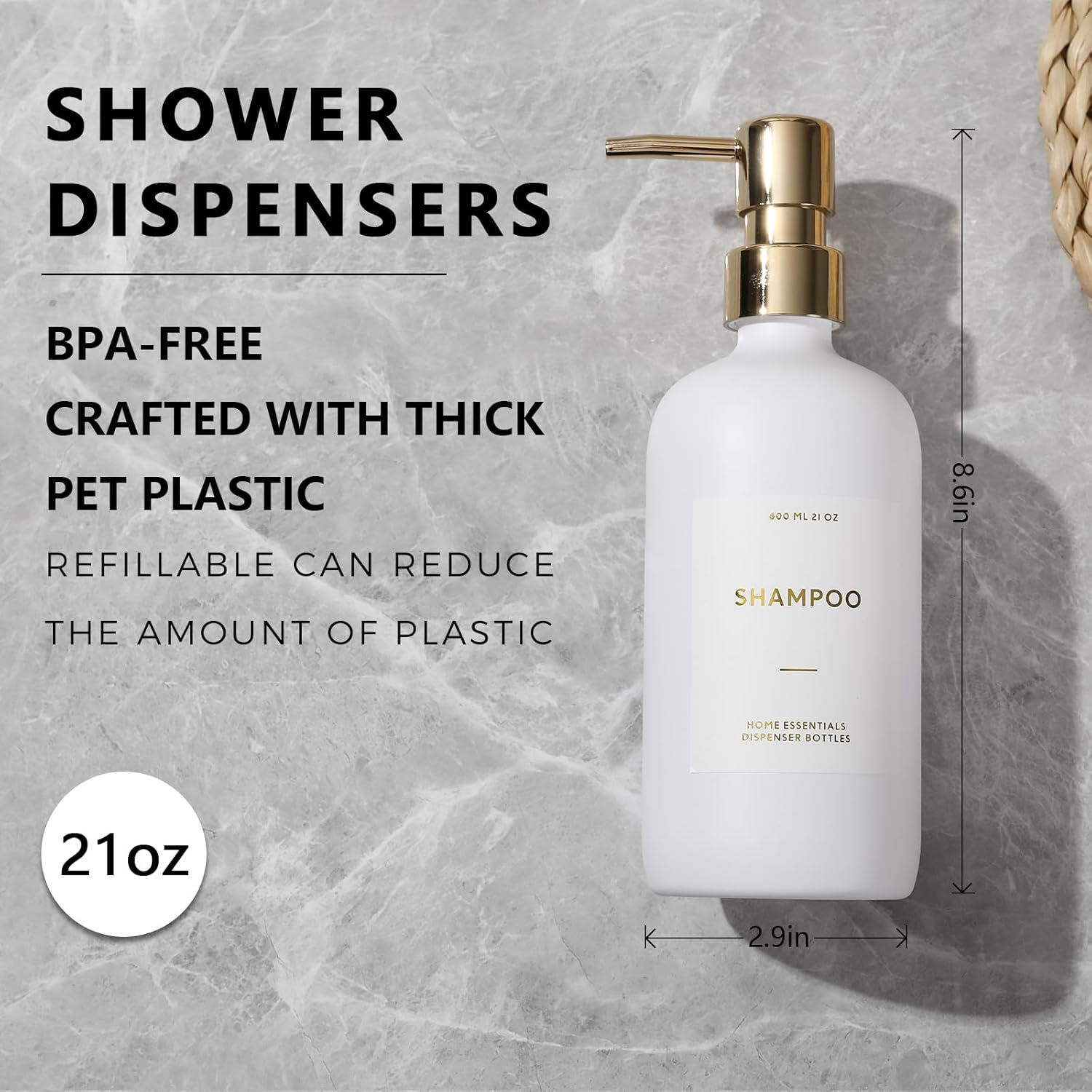 - PERFECT PRESENTS IDEA - The shower pump dispenser upscale any bathroom decor! The beautiful reusable shampoo bottles set makes a beautiful presents for a housewarming, wedding or any other occasion.