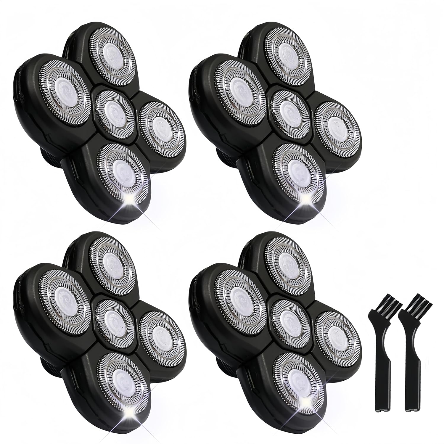 4PCS Shaver Replacement Blades for Head Shaver, 5 Blades Shaver Heads for Bald Men, Head and Face Electric Razor Shaver Heads, 2 Cleaning Brush