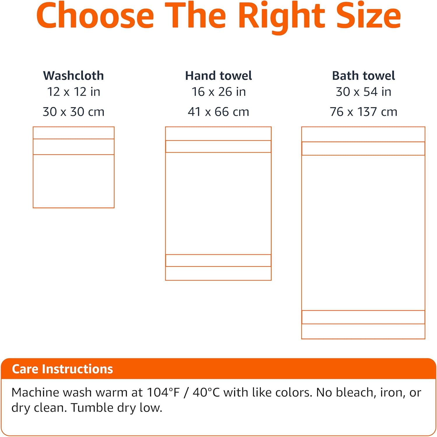 - Set of 6 towels includes (2) 30 x 54-inch bath towels, (2) 16 x 26-inch hand towels, and (2) 12 x 12-inch washcloths