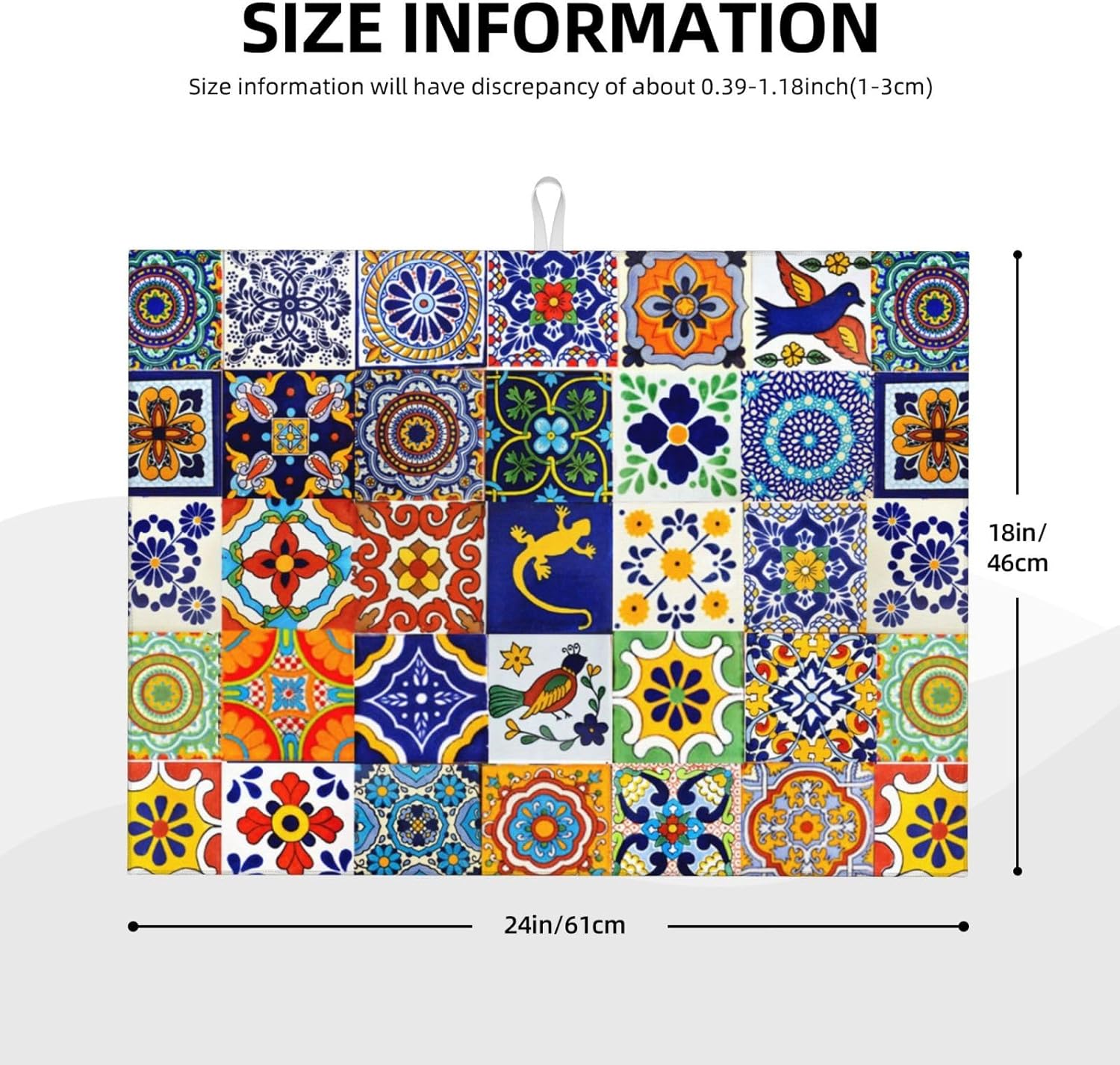 Mexican Tilt Dish Drying Mat For Kitchen Counter Absorbent Large Kitchen Fast Dry Pad Reusable Washable Protector Rack Large Mat 18 X 24
