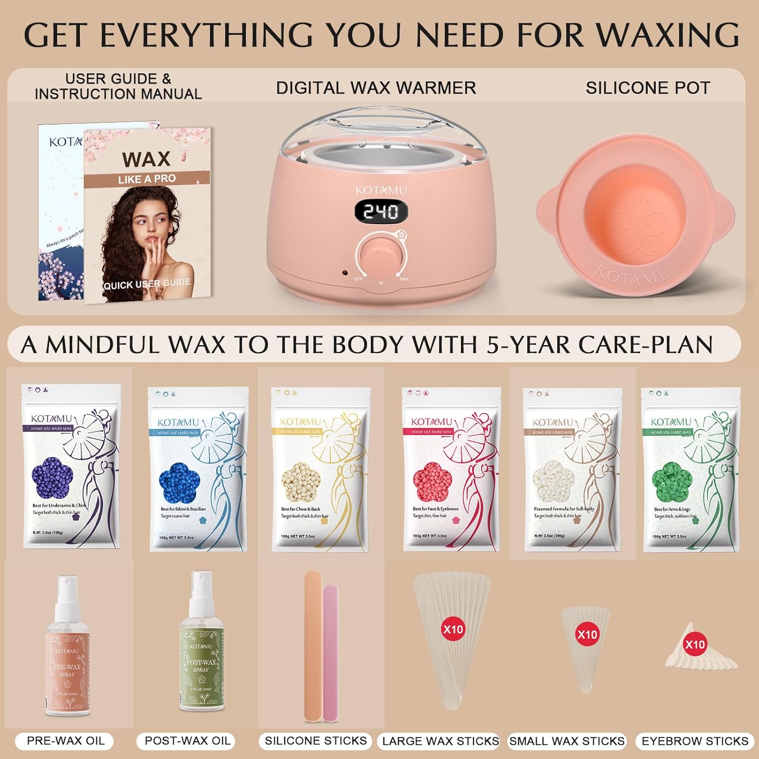- Durable Quality & 5-year Care-Plan: Trust in KOTAMU's commitment to excellence with our high-quality wax machine for hair removal, backed by rigorously tested and our industry-leading 5-year Care-Plan. Our reliability promises you'll enjoy superior performance for years to come
