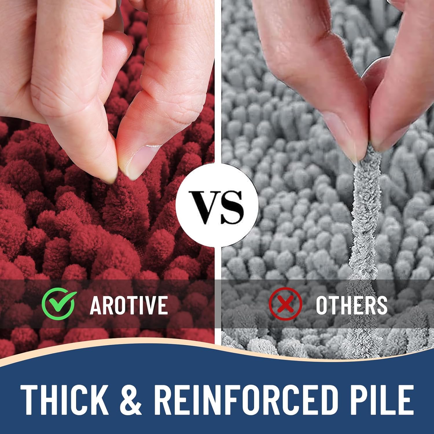 - Anti-Skid Backing: Arotive chenille bathroom rugs feature a non-slip bottom consisting of sturdy mesh PVC material that stops the bath mat from shifting and skidding. The middle layer is 4 mm memory foam, which can let you feel more comfortable when wrapping into the rugs. WARNING: Place bath mat on CLEAN DRY FLAT FLOOR ONLY. Water under bath rug can cause it to slip. Always keep the bottom of bath rug dry