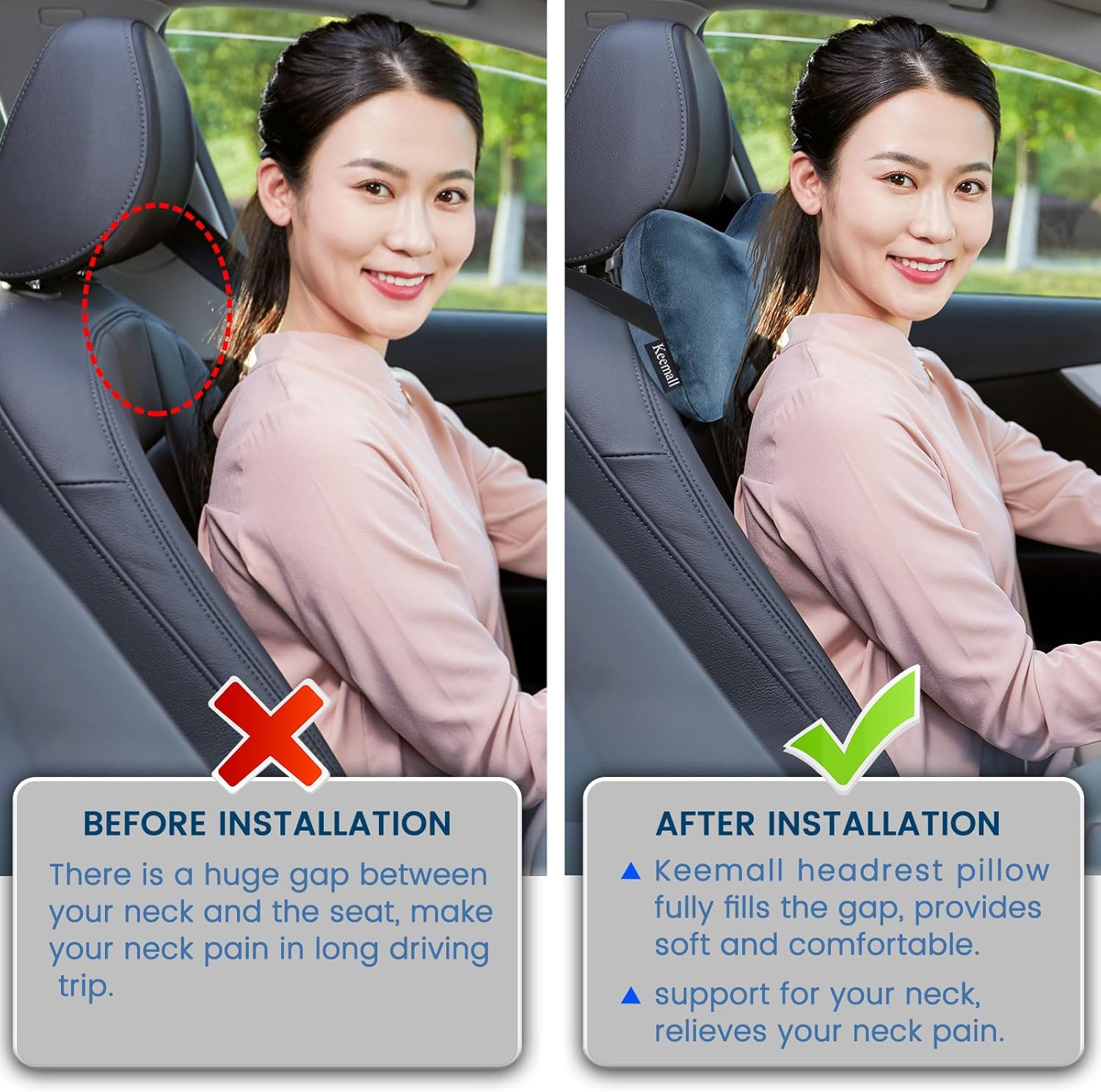 - ADJUSTABLE STRAPS : Attached to the top of car seats,chairs or camping pads,To ensure a secure and comfortable fit for individuals of varying sizes,neck pillow for Car or SUV, Boost Your Driving Comfort, Fits All Vehicles.