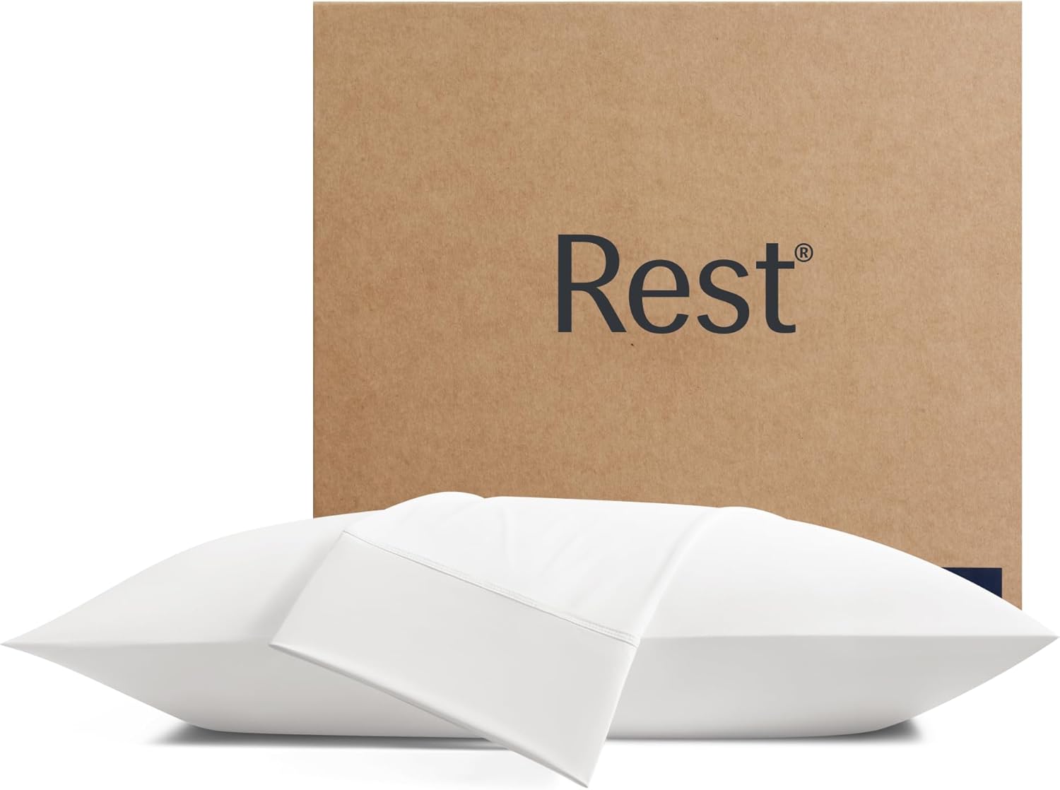 REST® Evercool®+ Cooling Pillowcases Standard - 2 Pillowcases for Sensitive Skin, Silver Infused Fabric for Hygienic Sleep, Silky Smooth for Curly Hair, High Elastic for Snug Fit (19x29 inches)
