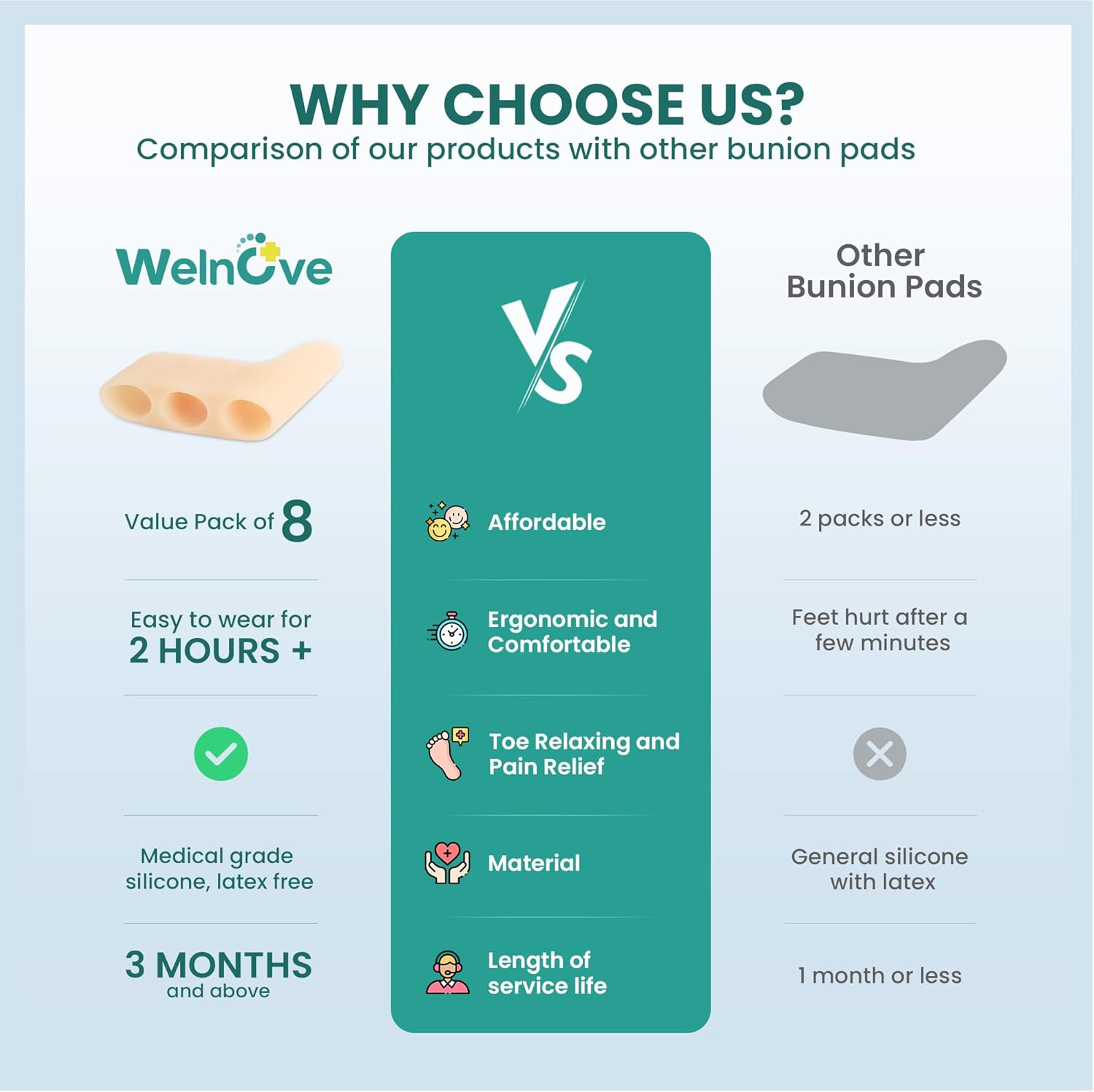 Welnove Gel Pinky Toe Separators - 8 Pack Pinky Toe Spacers, Bunion Cushions Pads for Women&Men, Silicone Little Toe Protectors for Preventing Rubbing & Relieve Pressure - FSA/HSA Eligible (Beige)