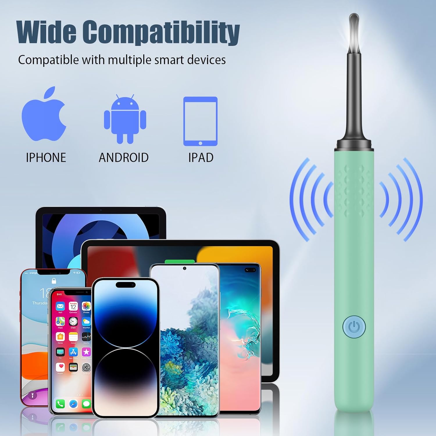 Ear Wax Removal Tool Camera - Ear Cleaner with 1080P HD Camera, Otoscope with Light, Earwax Removal Kit for iPhone, iPad, Android Phones (Green)