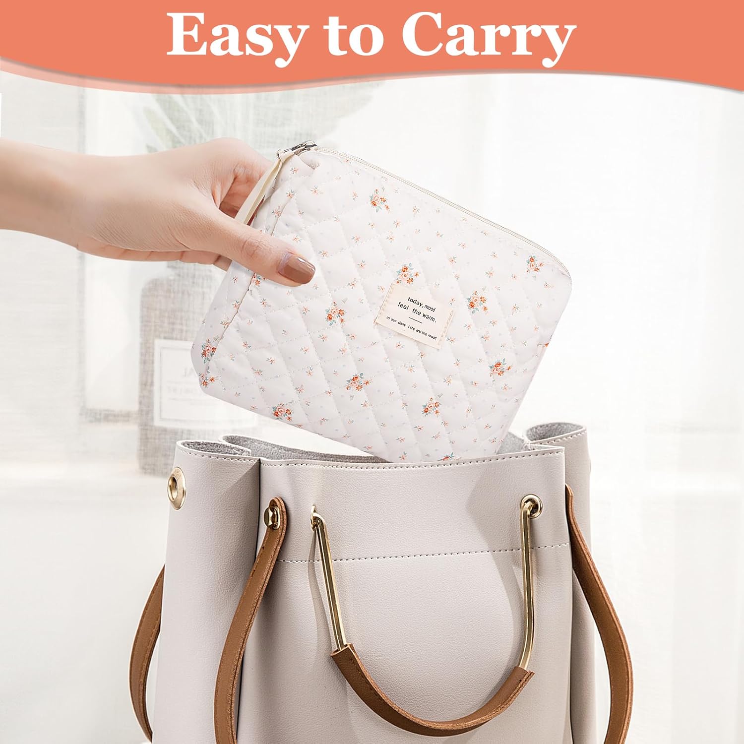 Floral Makeup Bag, Small Cosmetic Bag for Women Girls, Cute Cotton Makeup Bag, Quilted Makeup Bags, Flower Travel Toiletry Organizer Bag(Rose Pattern)